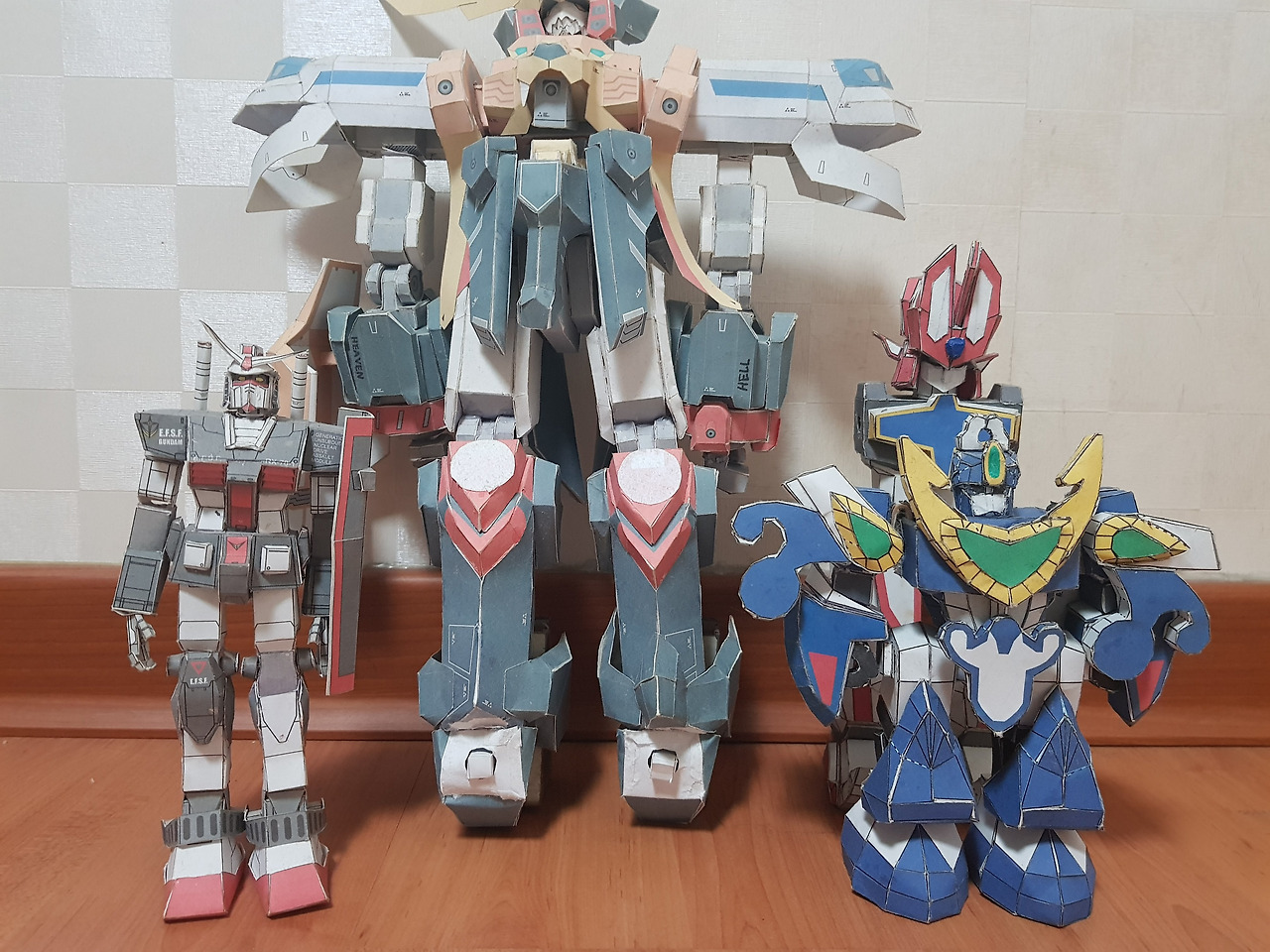 종이모형이 손에 익은 다음에는 좀 어려운 로봇류도 만들었다. 고정형이 아니라 가동형 모델들이었다. 하나는 가오가이가를 따라 만든 커뮤니티 회원의 자작 로봇이다. 서른장 가까이 되는 내 기준 대형 모델이었는데, 중3 여름방학 최대의 성과물이다. 그랑죠 시리즈로 잘 알려진 변신로봇도 만들었었다. 사실 이런 모형 제작은 문제가 좀 있다. 나이 먹고서야 깨달았는데, 종이모형들은 대부분 저작권 무단 도용으로 만들어진다. 이걸 판매하해서 수익 내는 사람도 있는데...마이너하고 시장성도 없어 보여서 안 잡나? 싶다.