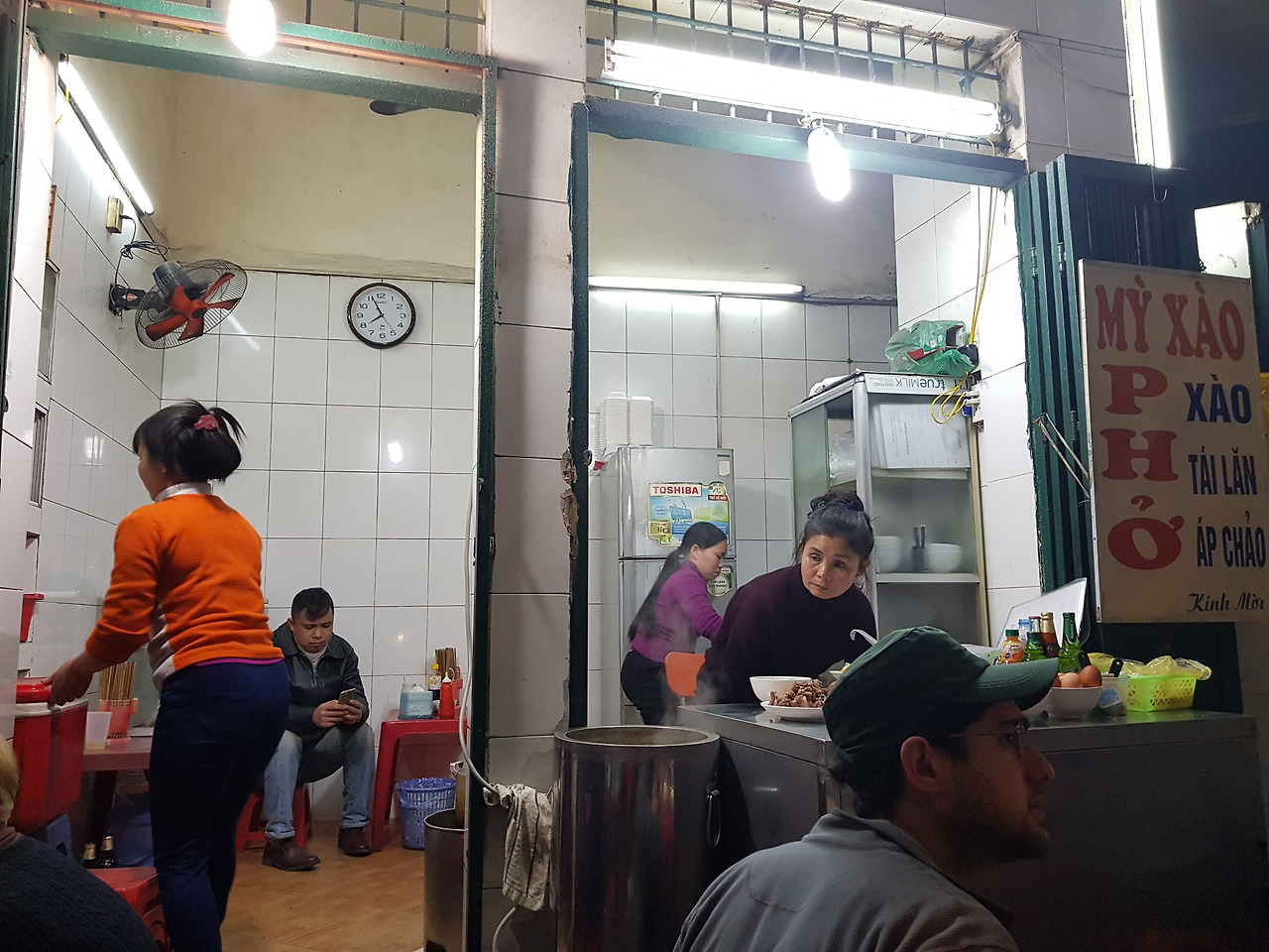구글맵을 켜고 갔는데 혼잡한 교통 상황 속에 오토바이에 치일까 걱정을 너무 많이 한 탓에 방향을 잘못 잡아서 다른 집에 도착했다. 분명 이 근처가 도착지라는데 찾을 수가 없다. 내비를 켜고 걸었어야 했는데 지도만 보고 방향을 알 수 있을 거라 생각했던 내 실수다. 거의 8시가 다 넘어 가는데 새로 찾을 자신도 없고 해서 그냥 앉았다. 내가 베트남 말을 못 읽지만, 대충 봐도 ‘퍼 짜 쭈웬’이라고 쓰여있진 않았다. ‘MY XAO PHO’라고 구글맵에 검색해도 안 나오는 가게였다. 거리 테이블 가득한 손님들, 손님을 구성하는 현지인과 관광객의 적절한 비율이 불안함을 조금 완화시킨다.