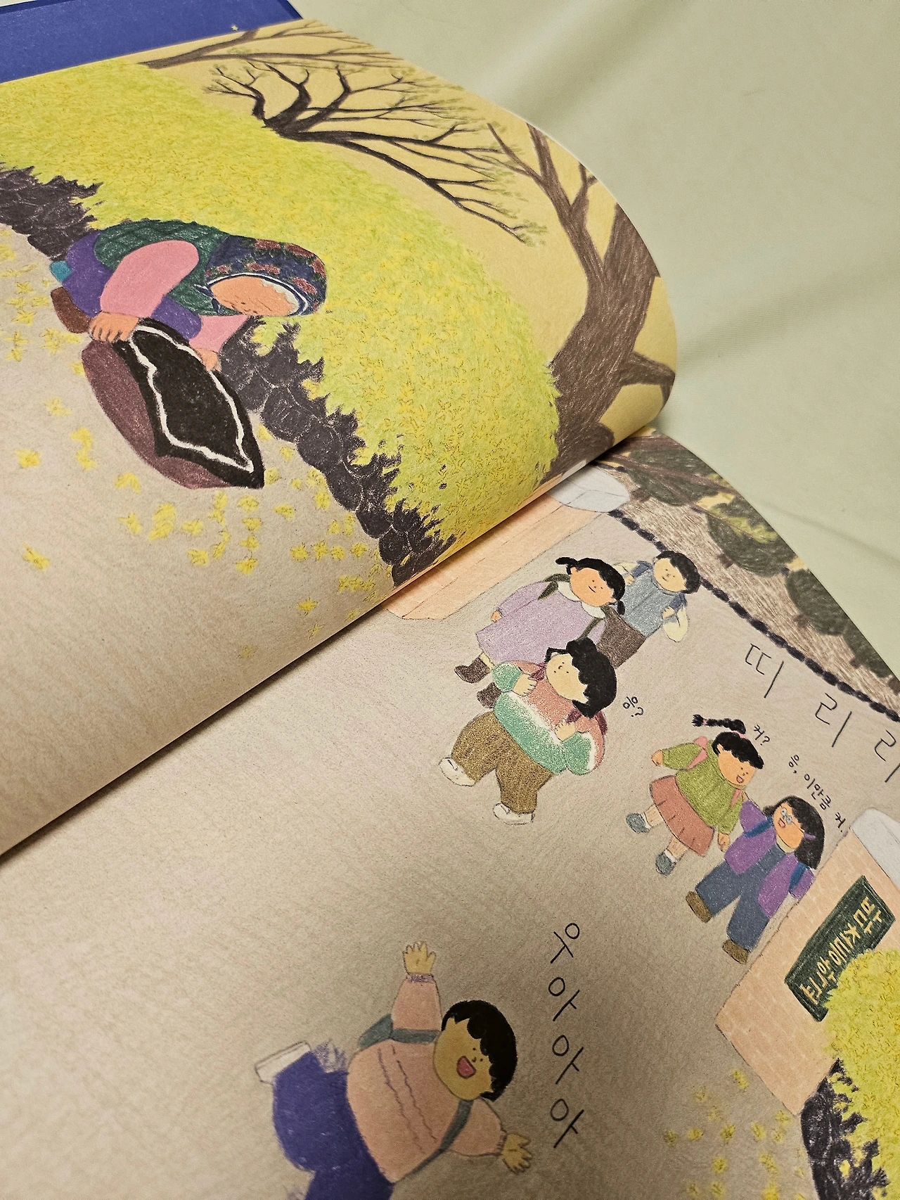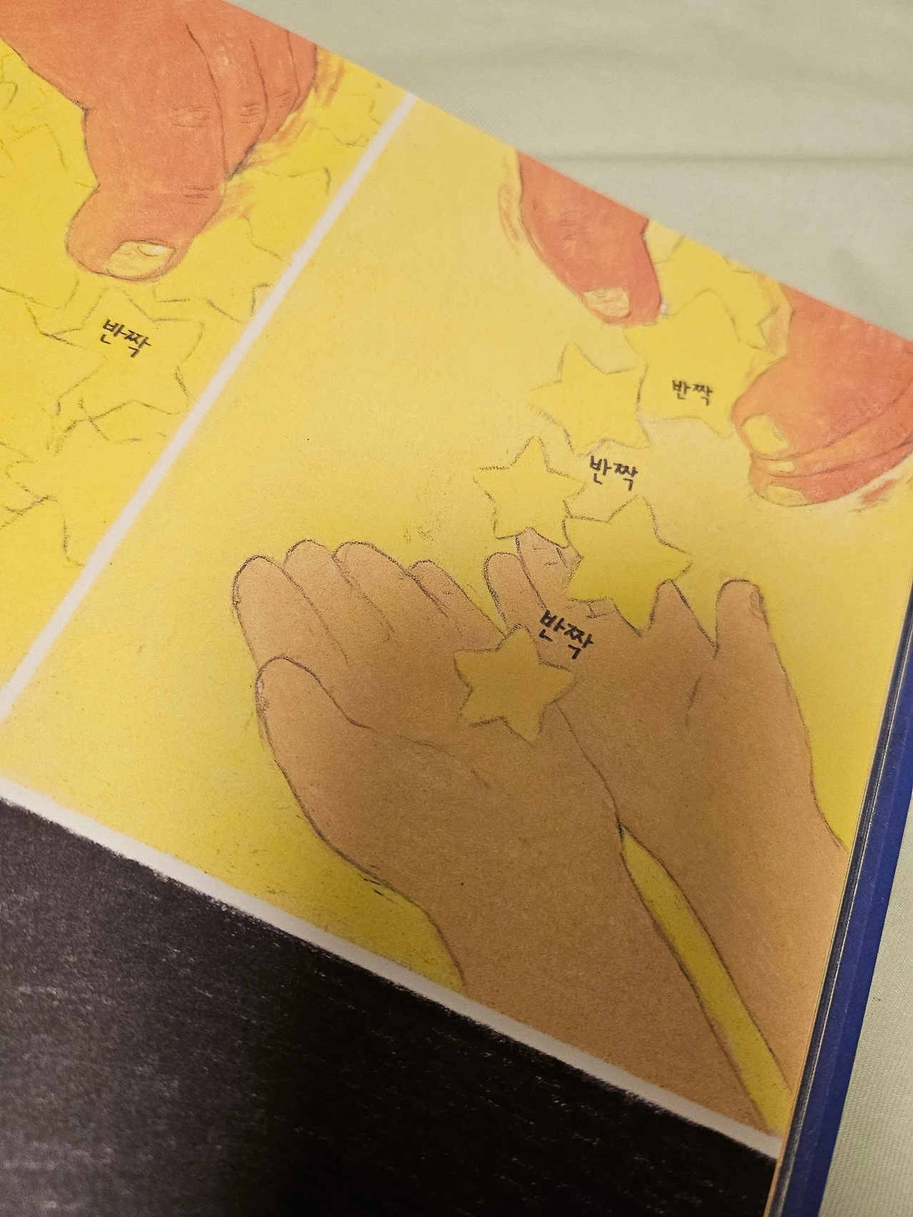 주인공 아이는 별 하나를 소중히 여기며 두 손으로 들고 니다. 머니에게 별 하나를 샀나 봅니다. 아이가 지나는 길 뒤로 보이는 바닷가 풍경과 사람들의 이야기를 들여다보는 것도 재미 포인트입니다. 학교 앞에서 할머니가 팔던 노란 별들이 어디서 왔는지 궁금할 독자에게는 힌트가 될 수도 있겠네요.