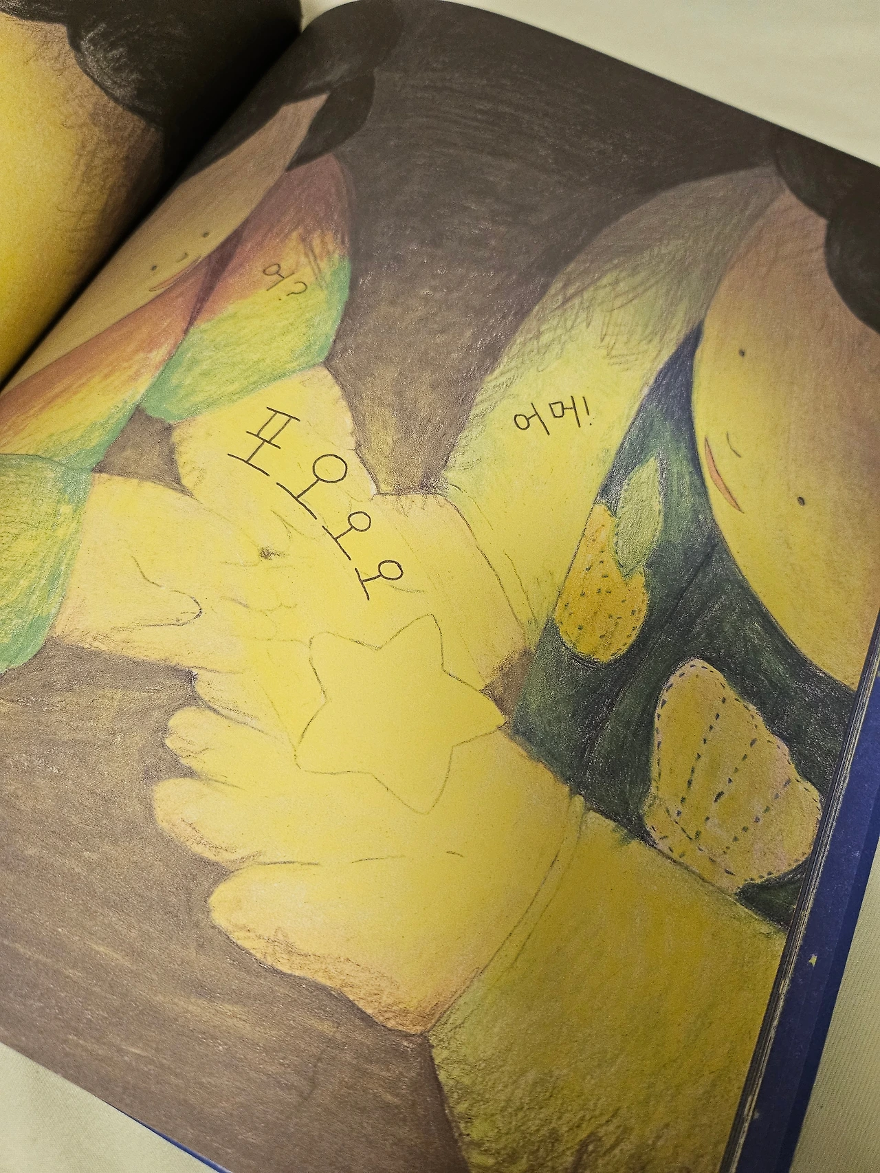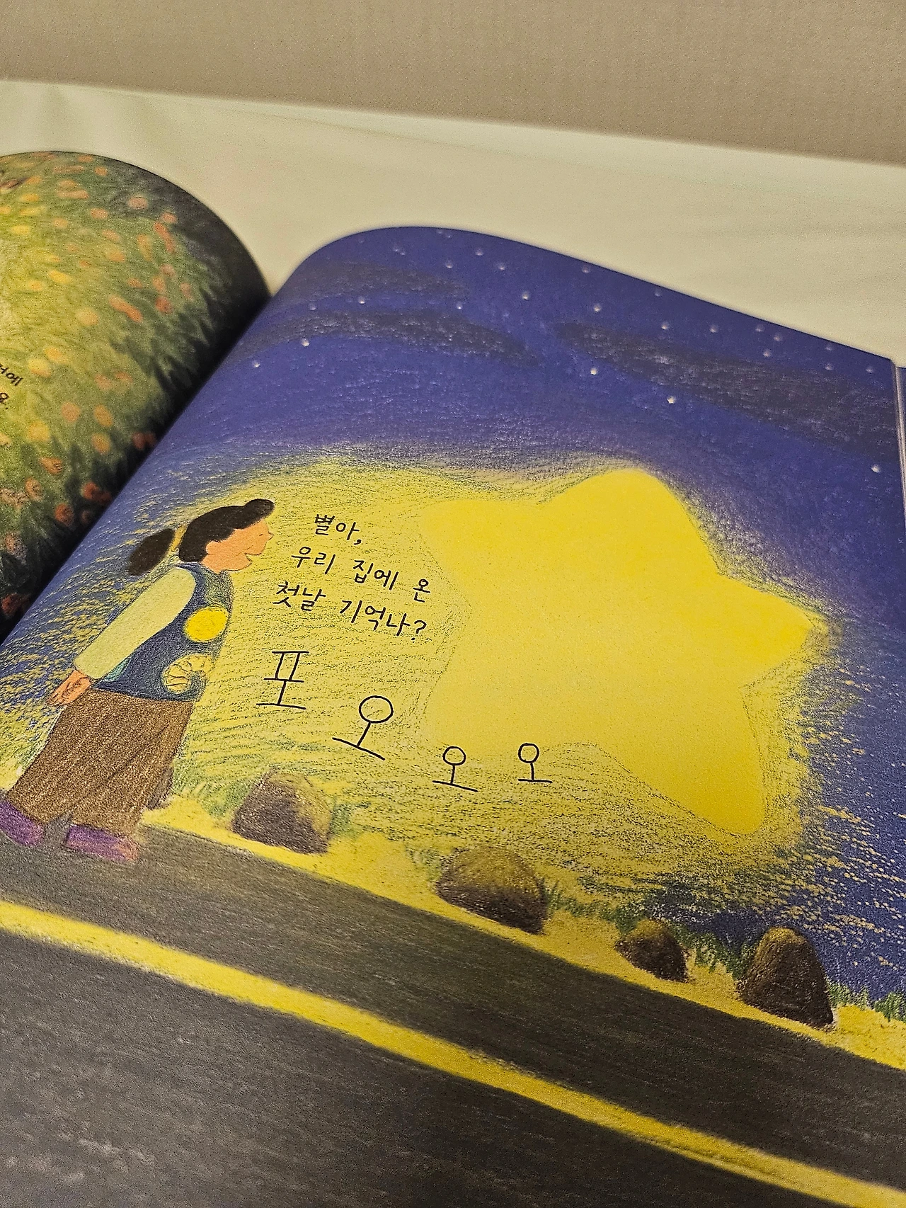 "안녕달 그림책이 와서 우리 마음의 집이 환해졌지. 우리에게 와줘서 고마워."라고 말하며 이 그림책을 읽고 있을 엄마와 아이가 상상는, 그림책 <별에게>였습니다.