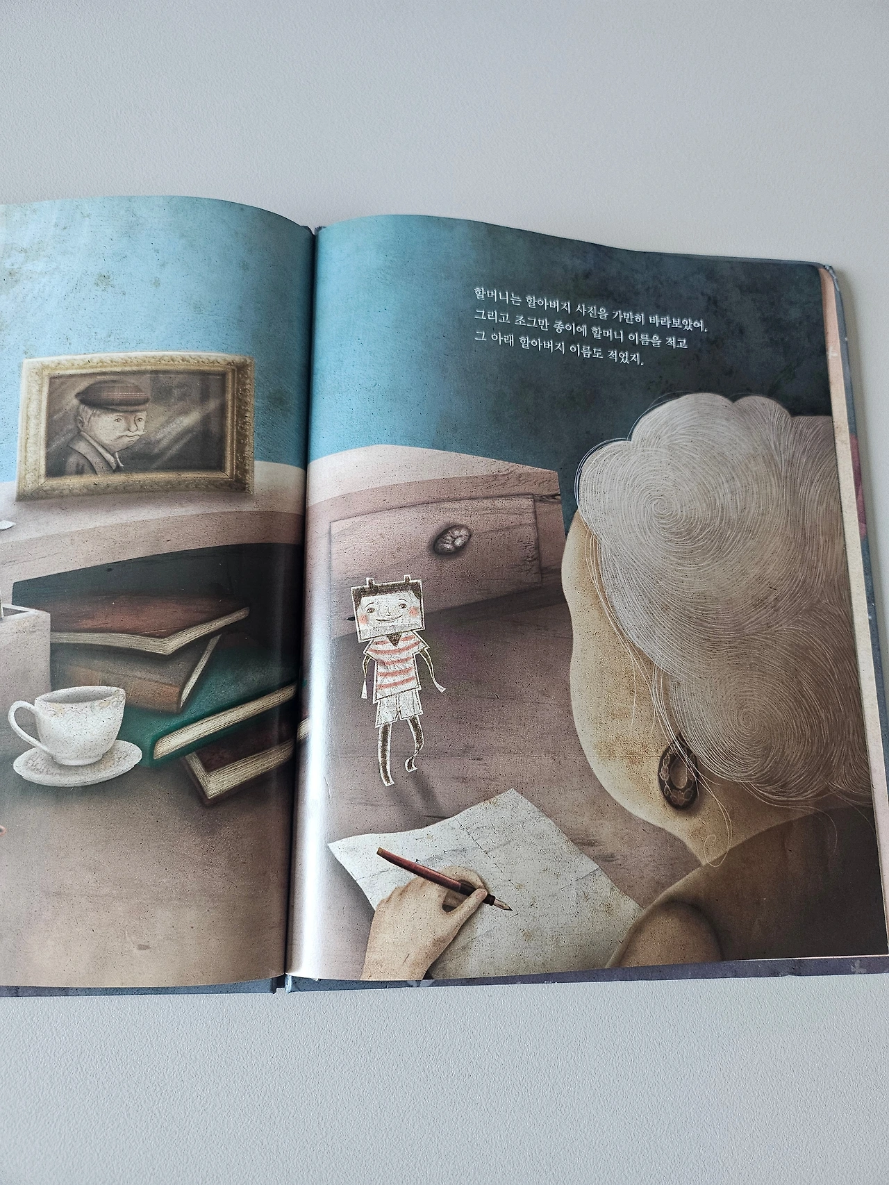 요정들이 지구별에 도착해 만난 할머니는 아기 요정의 말대로 얼굴이 종이 같다. 세월의 흔적이 종이 주름처럼 표현되어 있다.