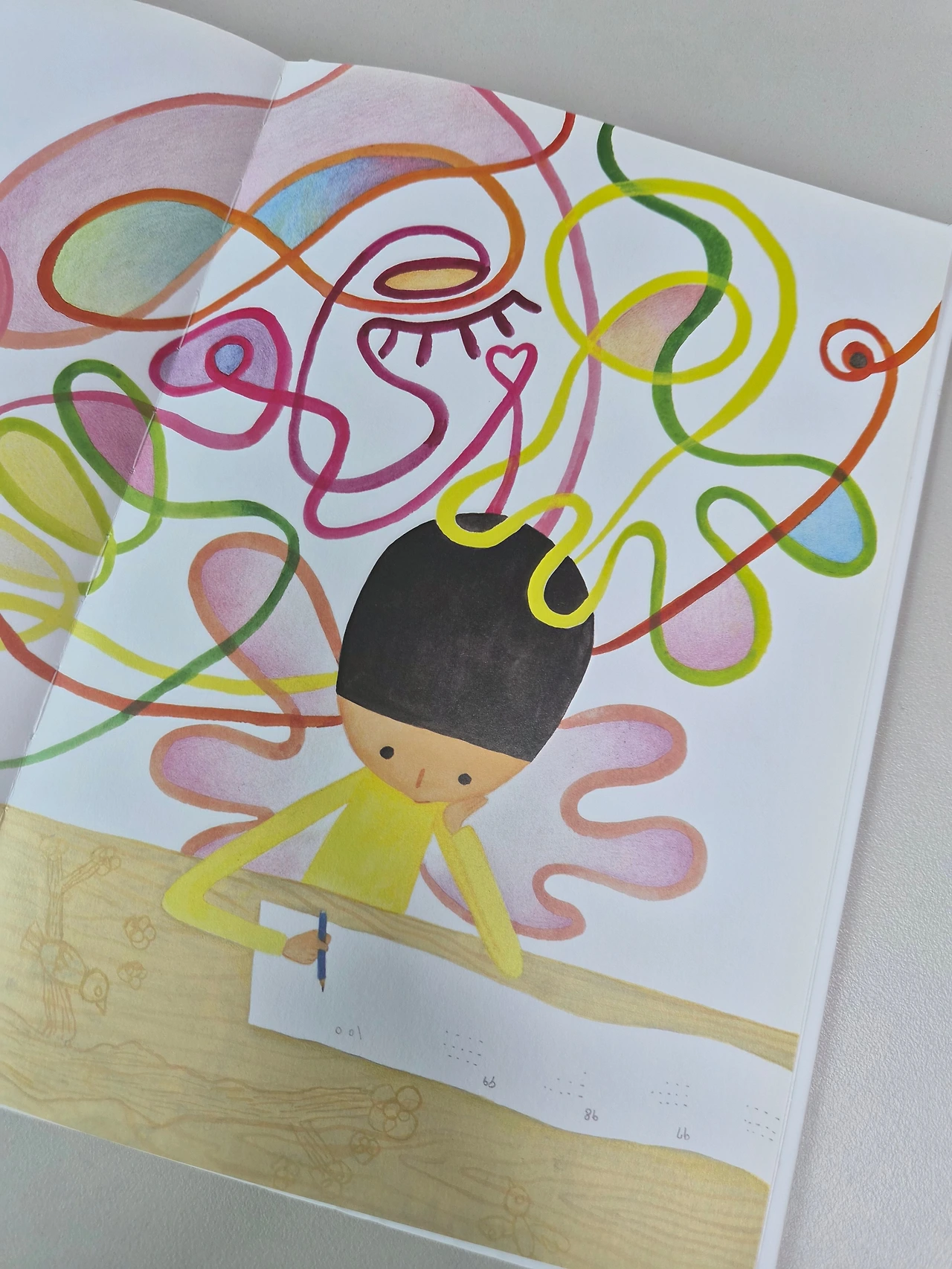 이선미 그림책 『진짜 내 소원』 에서 지니를 만난 주인공 아이는 자신이 진짜로 바라는 소원이 뭔지 알기 위해 자신에 대해 깊이 생각하는 시간을 갖는다.