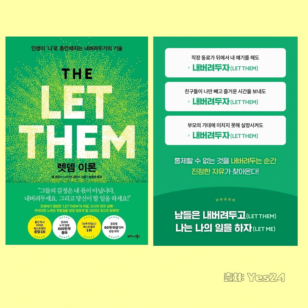 LET THEM 이론을 처음 들은 건 유튜브에서였고 그다음은 우리나라에 출간된 책을 가제본 서평단으로 받아서 읽을 때였다. LET THEM 책을 읽은 사람들이 왜 몸에 타투로 LET THEM을 새기는지 알 것도 같다. 계속 기억하고 삶에 적용하기 위해서이다. 나도 한동안 잊고 있다가 오늘 다시 생각났다.