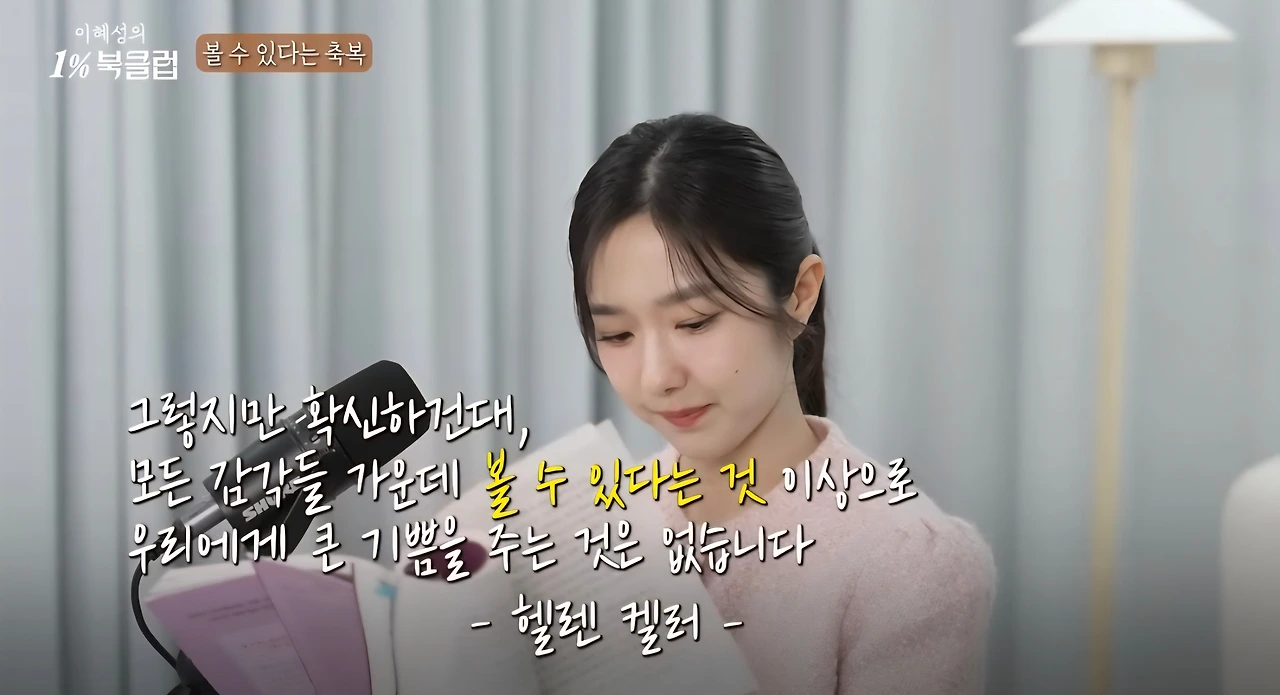 즐겨보는 유튜브 채널들 중에 <이혜성의 1% 북클럽>이 있다. 어제는 헬렌켈러가 쓴 에세이가 포함된 『사흘만 볼 수 있다면』책에 대한 소개 영상이 올라왔다. '우리가 아는 그 헬렌켈러 이야기잖아. 뭐 별다른 게 있겠어?' 하는 마음으로 틀어놓고 딴 일을 하다가 점점 집중하게 되었다.
