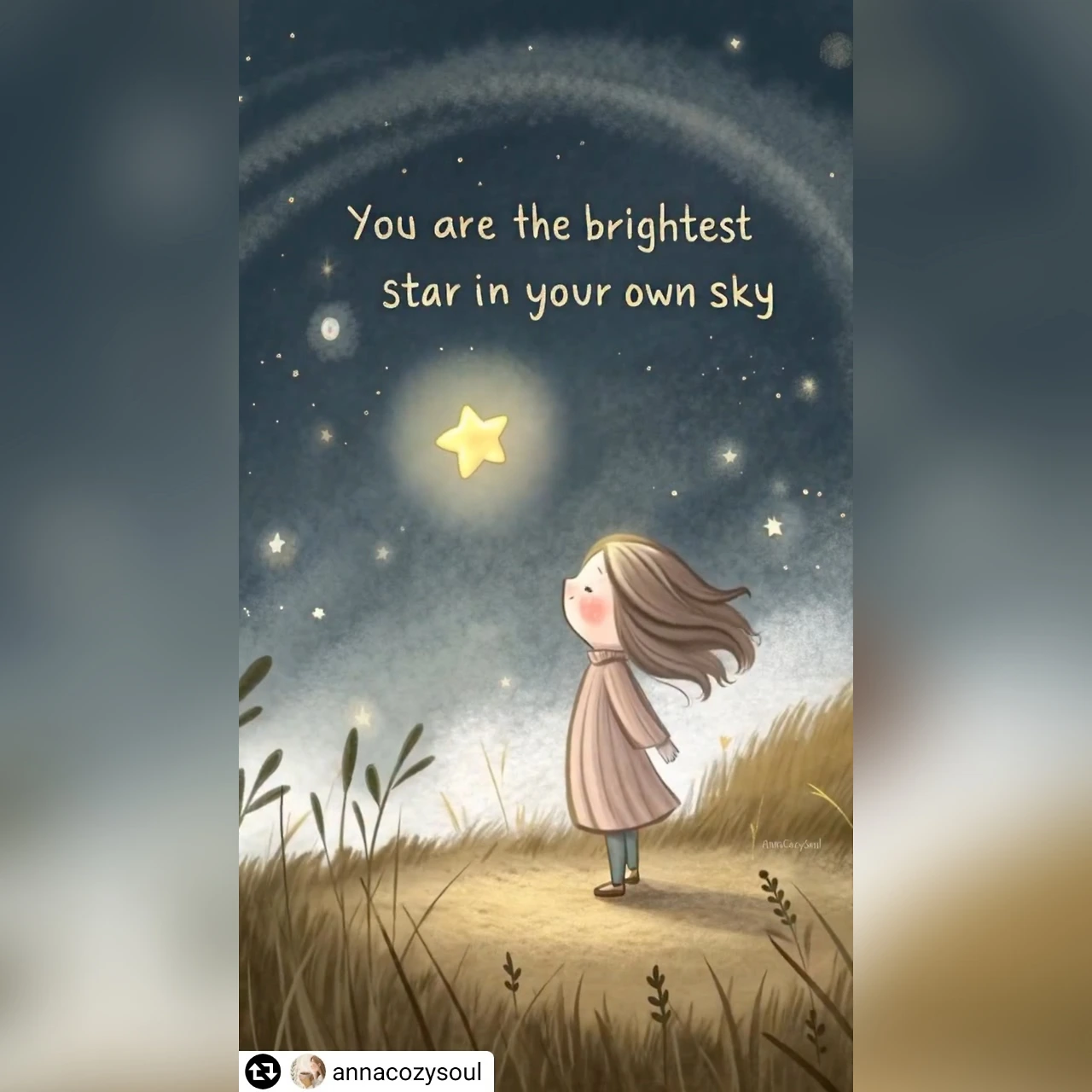 오늘 아침에는 인별그램에서 마음에 드는 예쁜 그림과 글을 만났다. '너의 하늘에서는 네가 가장 빛나는 별이야. '는 무슨 뜻일까? 우리 모두 각자의 인생에서 특별한 존재라는 의미일 것이다. 그렇다면 Be the brightest star in your own sky.라고 해도 좋겠다. 자신만의 하늘에서 가장 빛나는 별이 되라는 자기 긍정 메시지로 말이다. 우리는 모두 자신만의 빛과 의미(가치)를 가진 존재다. 있는 그대로 충분하며 각자의 모습으로 가장 밝게 빛나고 있다.
