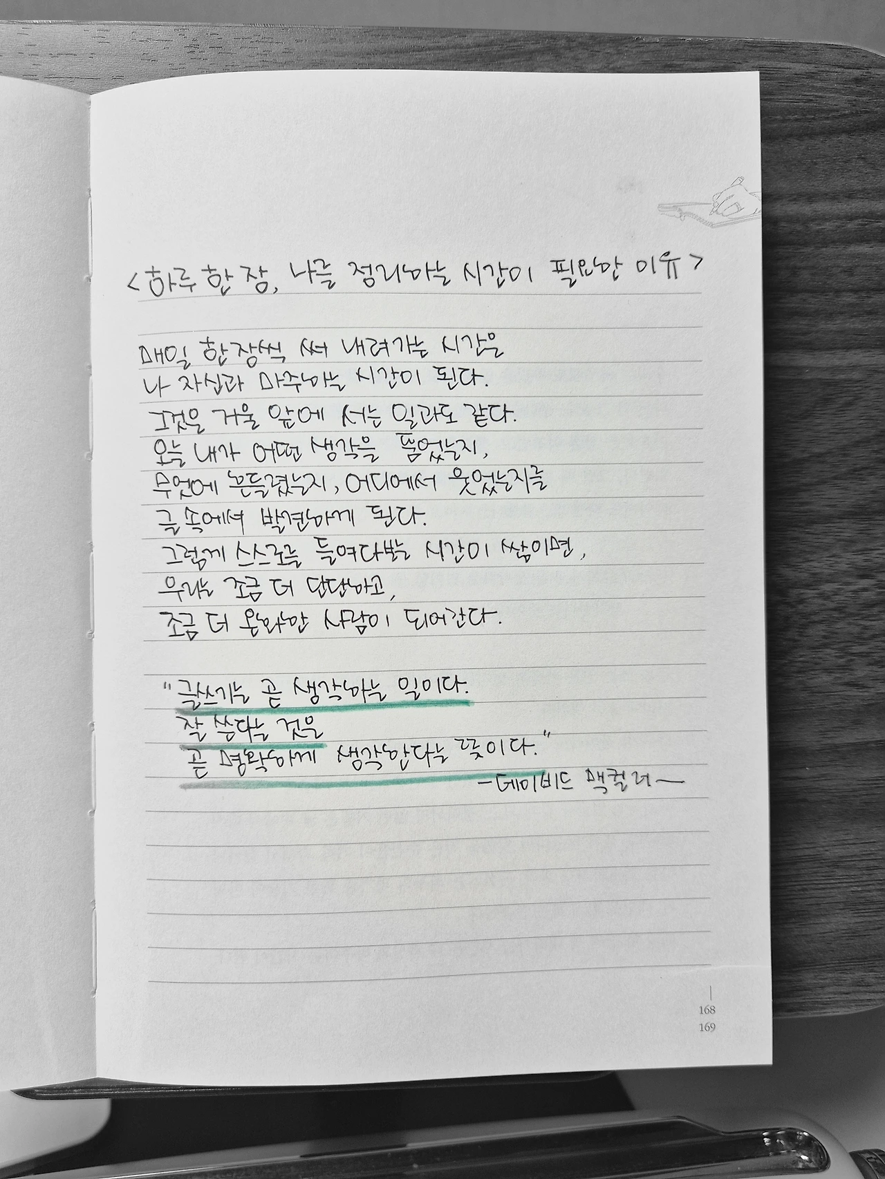 오늘 아침에 필사한 글에서도 글쓰기가 곧 명확하게 생각하는 일이라고 했다.