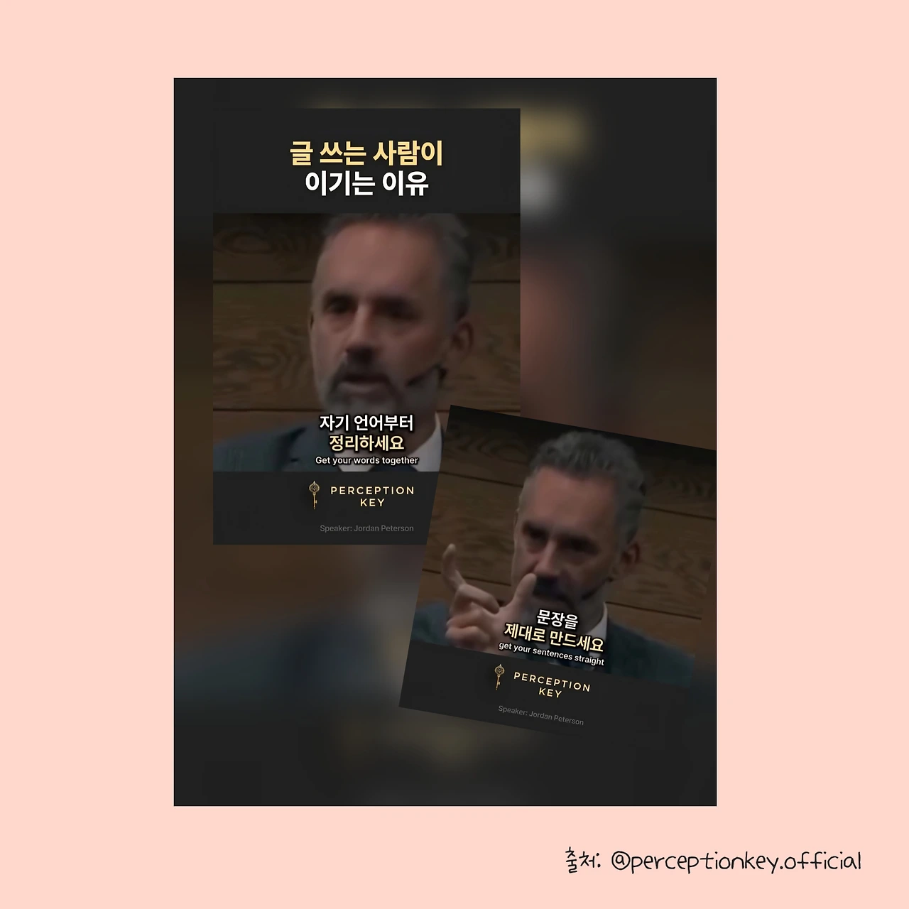 글 쓰는 법을 배우세요. 정말 진지하게 하는 말이에요. 글쓰기는 생각을 정리하거든요. 좀 어려운 문제를 골라서 신중하게 글 쓰는 법을 배우세요. 제가 단어 하나하나에 신경 쓰라고 말하는 데는 이유가 있어요. 맞는 단어를 고르고 단어들을 자연스럽게 이어서 문장을 제대로 만드세요. 단어를 갈고닦으세요. 단어만큼 강력한 건 없어요. 글을 잘 쓰고 말을 잘하고 제대로 전달할 수 있으면 그 자체로 충분한 힘을 갖게 됩니다. 가장 좋은 건 매일 읽고 쓰는 거예요. 매일 몇 시간씩요. 중요하다고 생각하는 것들에 대해 쓰고 진실이라 믿는 게 뭔지 발견해 보세요. 그게 기반이 되고 실제로 도움이 됩니다. 인생에서 크게 성취한 사람들을 보면 그들은 자신이 뭘 향해 가는지 놀라울 정도로 잘 말합니다. 전략을 세우고 협상하고 사람들이 그 비전을 따라오게 만듭니다. 말과 글부터 정리라는 거예요. 인문학의 핵심이에요. 자기 언어부터 정리하세요. 생각을 분명하게 말할 수 있는 사람이 되라는 겁니다. 그러면 가장 좋은 의미에서 아주 강해집니다. 진지하게 받아들여야 합니다. (Jordan Peterson)