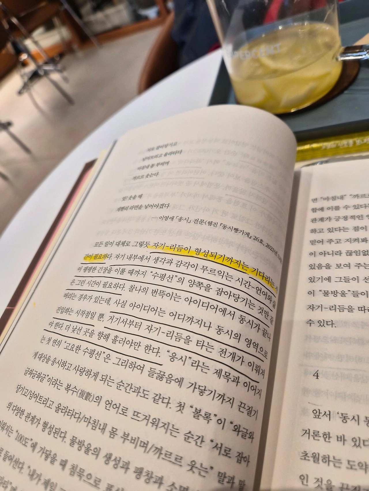 김준현 시인의 평론집 <낮은 음자리의 어린이>를 읽다가 '자기-리듬이 형성되기까지는 기다리는 시간이 필요하다.'라는 문장이 눈에 들어왔다. 개인의 고유한 언어와 감각이 자연스럽게 자리 잡을 때까지 기다려야 한다는 뜻이다. 창작자의 내면과 삶의 경험이 언어와 감각으로 응집될 때 생기는 것이 자기-리듬이라면 무르익은 자기 언어가 자연스럽게 흘러나오도록 기다리는 시간이 있어야 한다는 것이다.