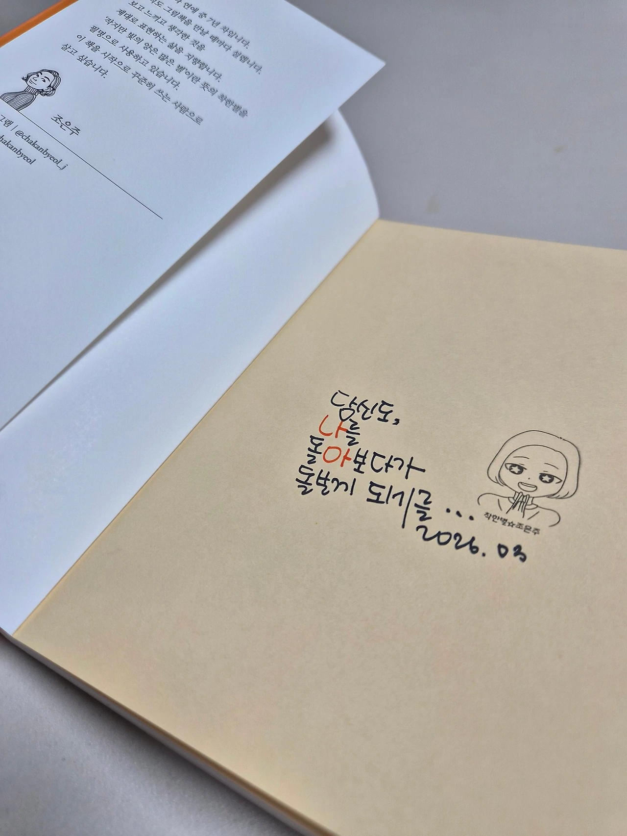 오늘은 얼마 전에 펀딩이 끝난 책에 사인도 하고 택배 포장도 도와드릴 겸 출판사에 다녀왔다. 어제 집으로 실물 책을 받았지만 오늘 출판사에 가서 6권을 모아놓고 보니 생각보다 예뻤다. 그중 주황색인 내 책을 펀딩 해주신 분들께 정성껏 사인을 했다. 사인을 하다 보니 본의 아니게 누가 내 책을 사주었는지 알 수 있었다. 산 사람들 중에 의외의 사람이 몇 명 있어서 살짝 놀랐고 사준다고 했던 사람들이 명단에 없는 건 조금 서운하기도 했다. 하지만 펀딩 구매가 익숙지 않아서일 수도 있고 나중에 인터넷 서점에서 사려고 그랬을 수도 있겠다 싶기도 하고 무엇보다 그 사람 마음이니까, 어쩔 수 없는 일이다 하고 다시 기운을 냈다.