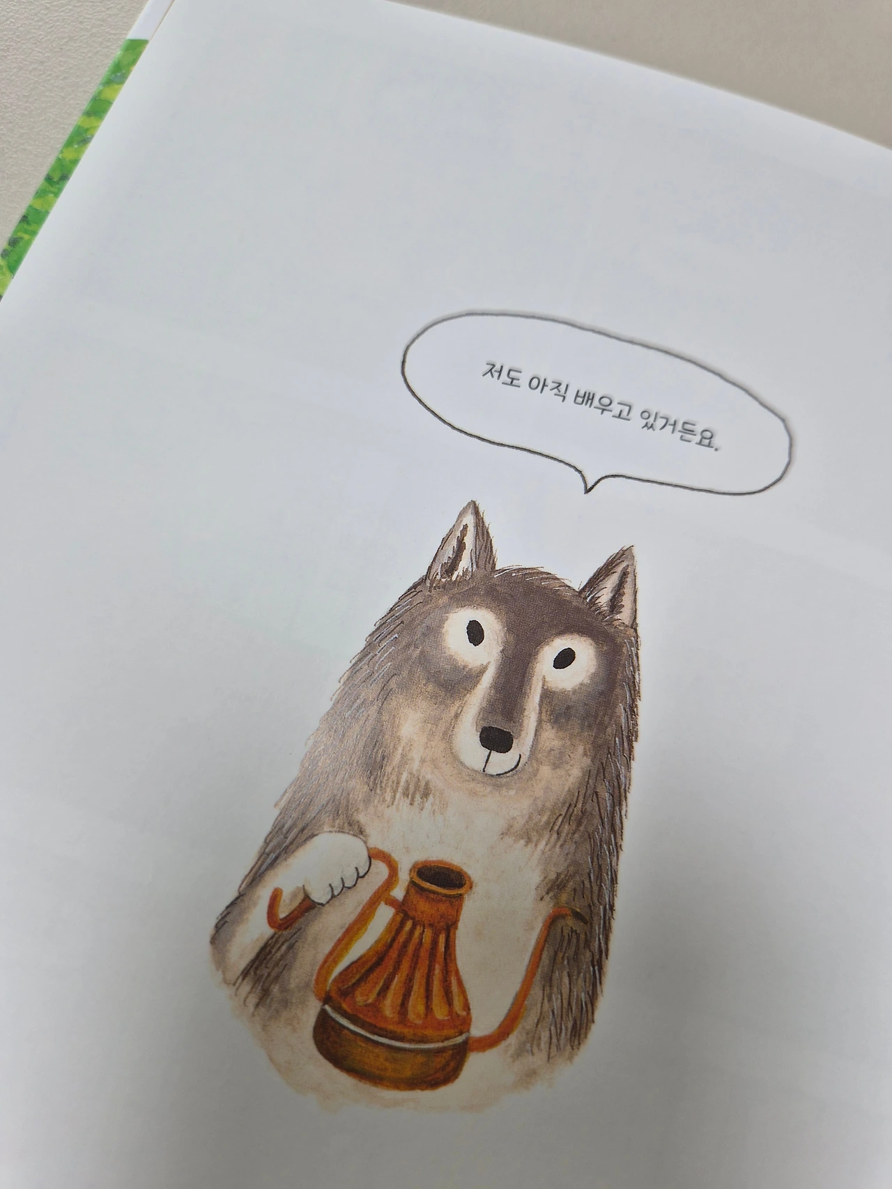 최근에 서평단책으로 받은 그림책 《곰 아저씨의 커피 가게》에 보면 "나도 아직 배우고 있거든"이라고 말하는 도토리 커피 만들기의 고수, 곰아저씨가 나온다. 자신처럼 도토리 커피 맛을 내고 싶어 하는 늑대에게 곰 아저씨는 스스로 방법을 찾아야 한다고 한다. 그리고 잘하고 싶은 것에 집중하고 온마음을 다해야 그 마음이 손님에게 전해진다는 가르침을 준다. 어느 정도 내공을 쌓은 늑대에게 또 누군가 비법을 배우고 싶다고 말했을 때, 늑대 역시 "저도 아직 배우고 있거든요." 라고 말한다. 이 그림책의 핵심 메시지다. 우리는 모두 아직 배우고 있는 중이다. 배움에는 끝이 없다. 이 그림책을 읽다가 '나의 스승'이 떠올랐다. "여러분 보다 그림책을 20년 먼저 만났을 뿐이에요"라는 말은 그 정도의 시간을 보내면 여러분도 나만큼 알게 될 거라는 뜻이었다. 어떤 경지에 이르는 데는 꼭 필요한 시간이 있다. 지난 7년 동안 그림책을 보면서 나만의 방식으로 그림책을 사랑하는 법을 찾았다. 그림책에서 내가 발견한 '자기 돌봄 이야기'를 온 마음 다해 첫 책에 썼다. 독자에게 그 마음이 전해지면 좋겠다. 그림책도, 동시도, 글쓰기도 그리고 또 그 무엇도... 나도 아직 (온마음으로) 배우고 있는 중이다.