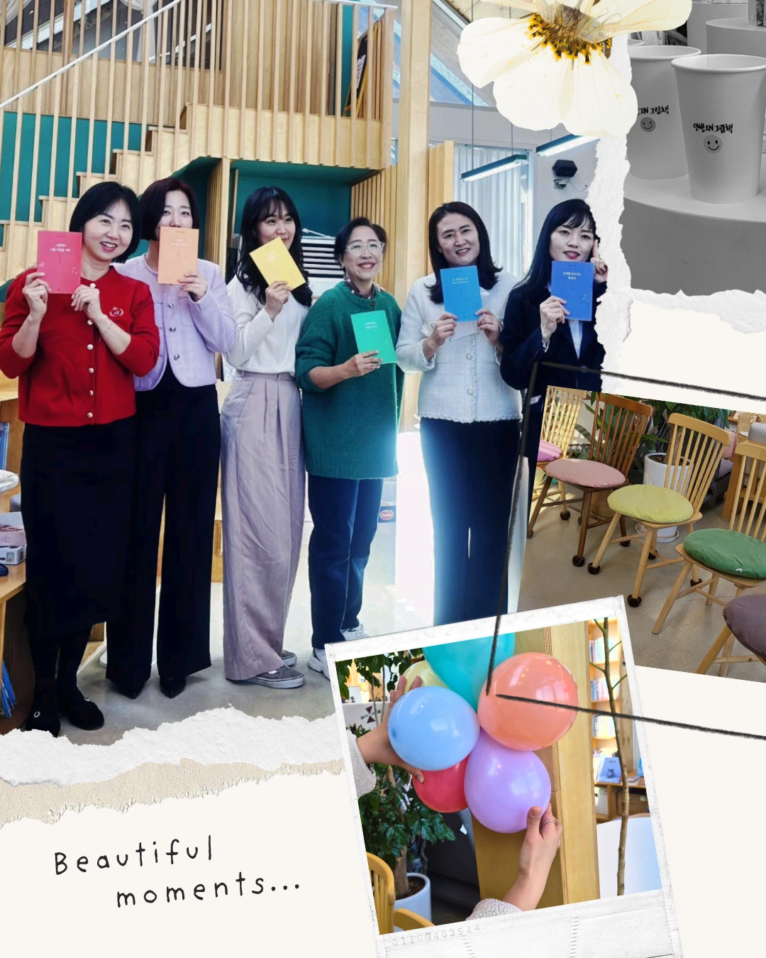 가족들과 지인들이 오셔서 축하주셨어요. 작가들의 책 소개가 있었고 즐겁게 노는 시간도 있었어요. 함께 한 모두가 행복과 감사를 느끼는 시간이었습니다.