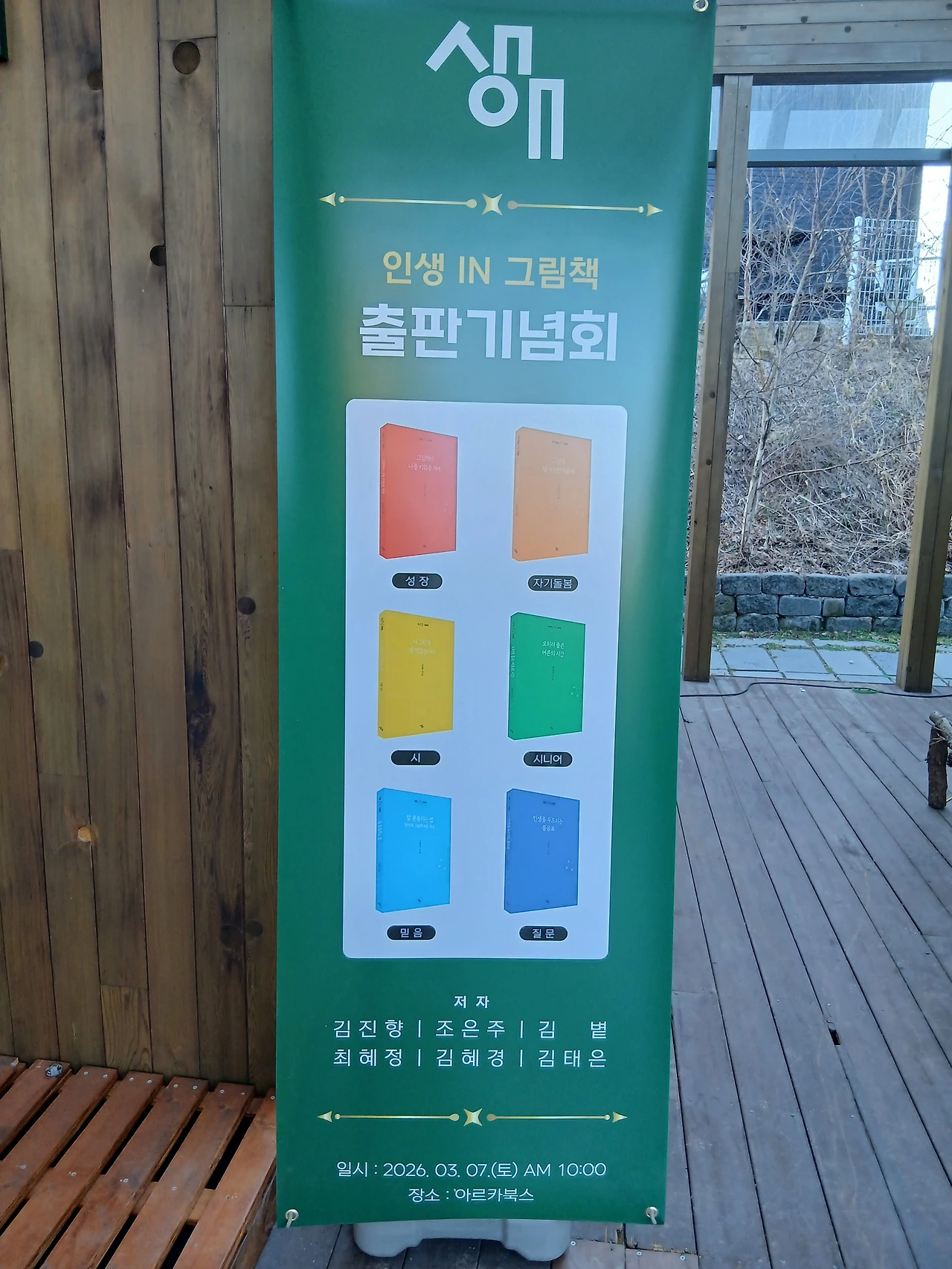지난 3월 7일에는 아르카북스 책방에서 <인생 in 그림책> 출판기념회가 있었습니다. 알록달록 예쁜 무지개가 책방에 떠있던 날이었어요.
