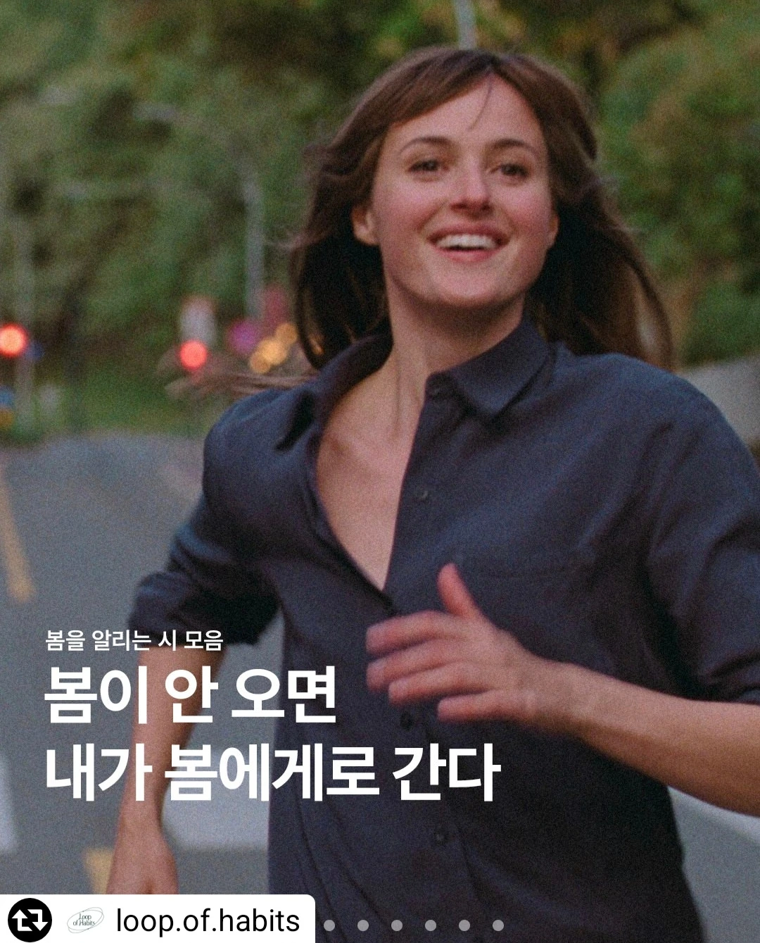 인별그램을 보다가 <봄이 안 오면 내가 봄에게로 간다>는 문장이 눈에 들어왔다. 나도, 봄이 오는 게 아니라 내가 봄에게 가는 거라고 생각한다. 그리고 지금도 봄에게 가는 중이다. 나에게 봄은 무엇일까? 사진 한 장으로 표현한다면 적당한 바람, 따스한 햇살, 사랑하는 사람들의 웃음소리가 있는 풍경 속의 내 모습이 아닐까? 나를 확대해 보면 입가에 행복이 묻어있을 것이다. 생각만 해도 기분 좋다.