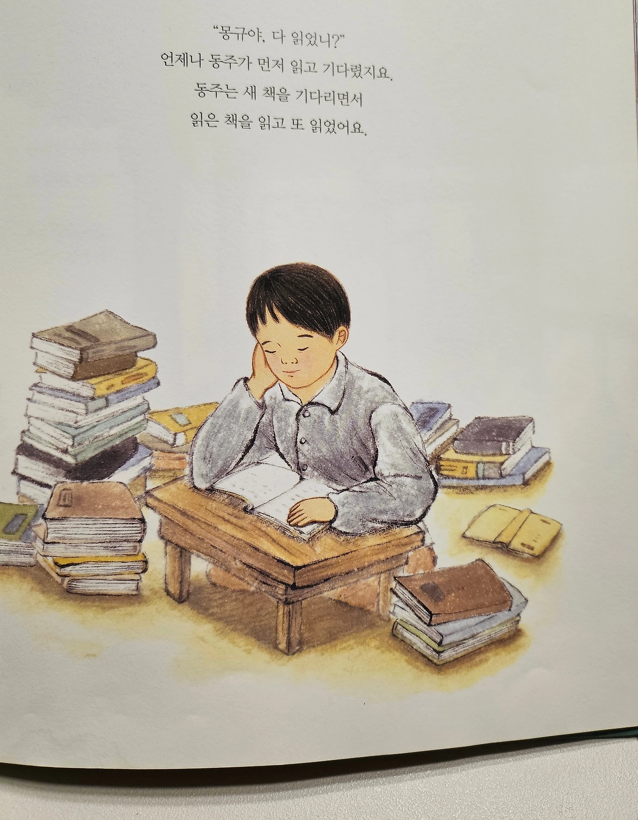 유난히 책 읽기를 좋아했던 동주의 모습이 보인다. 죽기 전까지 삶의 많은 부분을 공유했던 사촌 형 송몽규와 책을 돌려가며 읽던 시절의 모습이다. 송몽규가 중학생의 신분으로 신춘문예에 당선된 일이 윤동주에게 동기부여가 되어 시를 더 열심히 쓰게 되었다는 일화가 생각났다. 좋은 자극은 원동력이 된다.