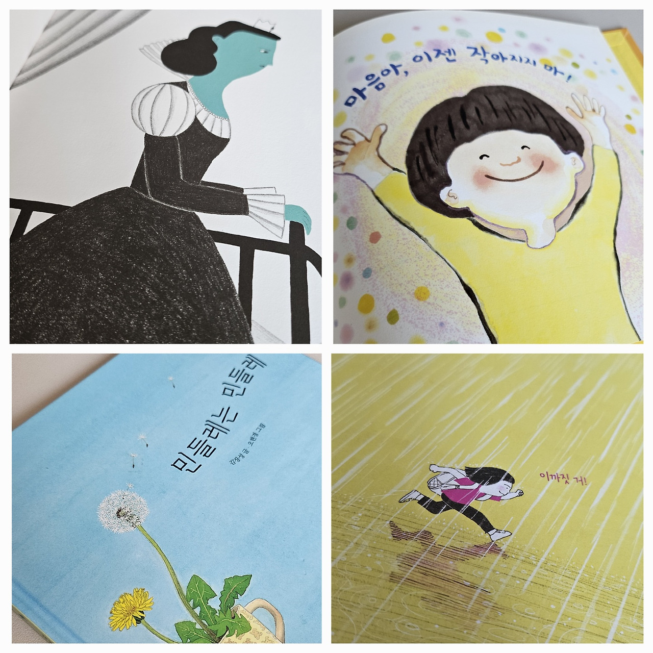 처음 만났던 윤지회 그림책 <방긋 아기씨>에서 왕비는 아기를 낳기 전부터 파란 피부에 웃고 있지 않았다. 엄마를 보고 있는 아기에게 웃어주지 않는 엄마이기 이전부터 그랬다는 뜻이다. 나는 왕비의 모습에서 나를 보았다. 나의 출산 전 히스토리를 떠올렸다. 신혜은 글, 김효진 그림의 <마음아, 작아지지 마>에서는 자꾸 작아지던 내 마음을 보았다. 이제는 마음을 키우는 법을 안다. 그림책 <마음 빨래>에서 처럼 스스로 얼룩 지우는 법도 알고 그림책 <감정 호텔>의 지배인처럼 나의 감정을 보살필 줄도 안다. 그림책 <민들레는 민들레>의 메시지처럼 <조은주는 조은주>라는 것도 깨달았다. 이현주 그림책 <이까짓 거!>에서처럼 우산이 없어도 뛸 수 있는 마음의 힘이 생겼다. 지난 5년 동안 내가 만난 그림책들이 나를 다시 키웠다. 앞으로 10년, 20년 그 후에도 오래오래 그림책과 함께 하고 싶다.