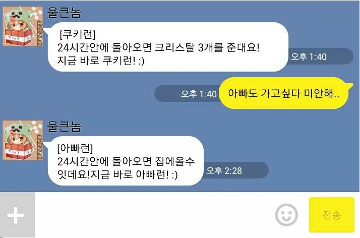 아들이 보낸 카카오톡 메시지를 열어 보면서