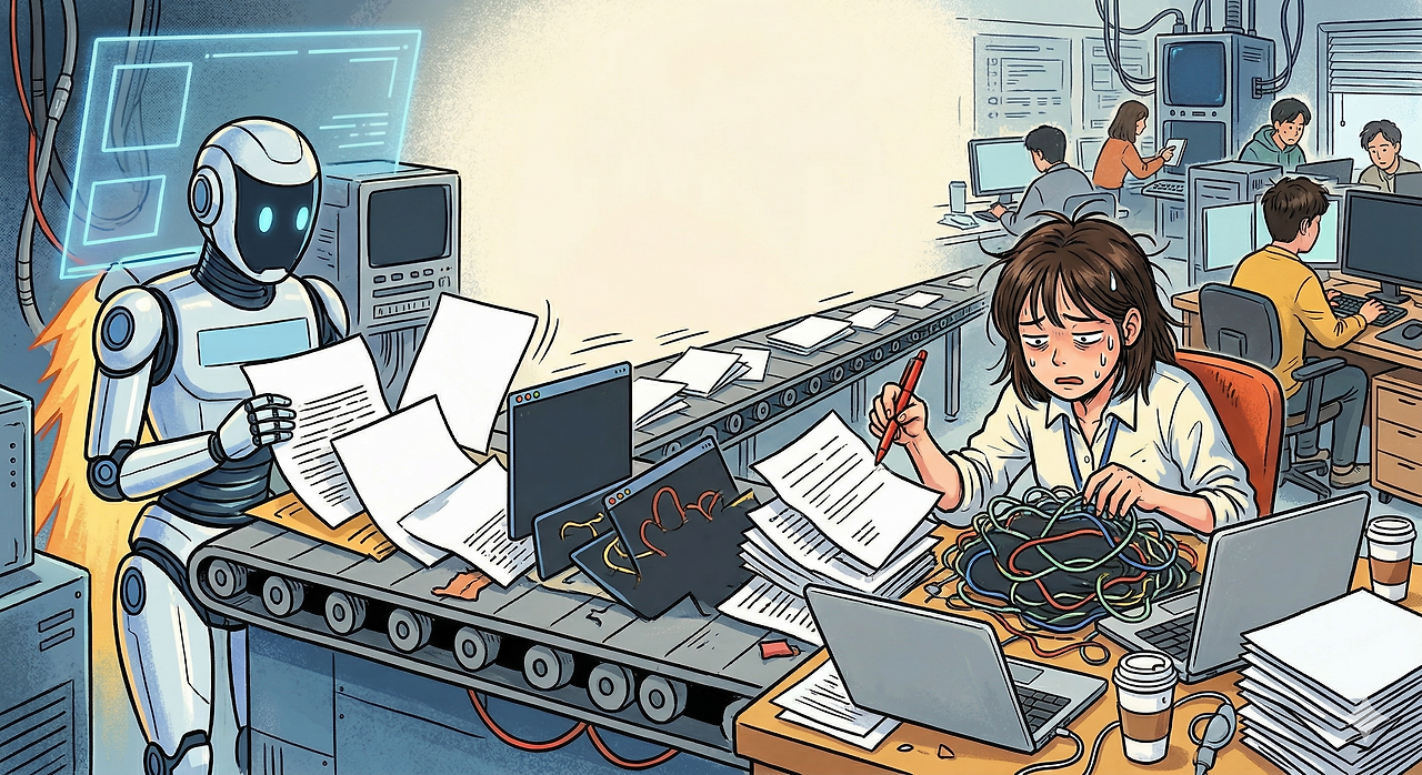 작년 여름께 개발자 친구와 만나 얘기를 하다가 AI 얘기가 나온 적이 있었다. 그 얘기가 나오자 친구는 한숨을 쉬더니 AI 때문에 전보다 할 일이 오히려 많아졌다고 하소연했다. 회사가 업무 전반을 AI로 혁신하겠다며 업무 프로세스 곳곳에 AI를 도입하고 자동화 가능한 부분은 자동화하겠다고 선언했는데, 정작 이를 안정적으로 구축하기 위한 과정에 시간이 더 걸린다는 것이었다. 어떤 부분에서는 오히려 AI 도입 이전보다 전반적인 효율성이 낮아지고 하는 일은 전보다 더 늘어났다고도 했다. 그럼에도 불구하고 윗선에서 계속해서 AI 확산을 밀어붙이고 있는 상황이라, AI 얘기만 들어도 지겹다고 토로했다.