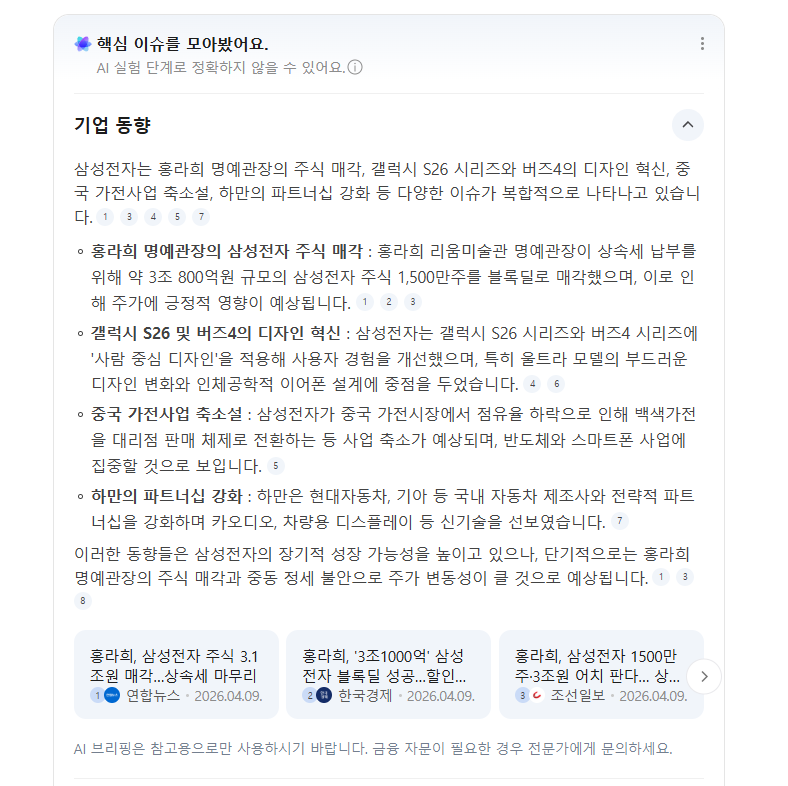 AI가 전 일상에 자연스럽게 적용되는 시대는 반드시 올 것이다. 이를 대비해 선제적으로 각 서비스에 자체 AI를 효율적으로 적용함으로써 경쟁력을 빠르게 확보하는 게 의미가 있을 수 있다. 하이퍼클로바X가 한국어를 가장 잘 아는 AI는 이제 아니더라도, 네이버 서비스와 이용자를 가장 잘 아는 AI임에는 분명하니까 말이다. 그 AI를 어떻게 이용자 맞춤으로 잘 적용하느냐에 대한 디테일한 것은 네이버가 앞으로 잘 구상하고 실행해 나가야 할 부분이고. 이게 앞으로 AI 시대에 네이버에게 남은 몇 안 되는 '해자(moat)'가 아닐까 싶다. 그리고 그 해자가 그래도 이번에는 경쟁력을 발휘해 줬으면 한다. 네이버의 '소버린 AI'가 이름값을 할 수 있는 어떻게 보면 마지막 기회라고 보기도 하고.