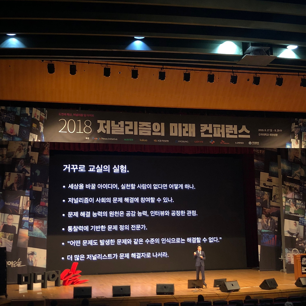 몸을 뒤척이다 잠 못 드는 날이 있다. 내겐 어제(26일)가 그랬다. 12시쯤 누워 책을 좀 보다 자려 해도 영 잠이 안 왔다. 그 전 날도 전전 날도, 방학을 시작한 날부터 늦게 자 버릇했으니, 3시는 돼야 잠에 들겠지 - 3시가 지나도 잘 수 없었다. 그 이유는 두 가지였다. 하나는 오늘이 개강 날이라는 것. 4학년인데 개강은 아직도 어렵다. 사실 4학년이란 사실이 어려운 걸 수도! 또 다른 이유는 오늘부터 <2018 저널리즘의 미래 컨퍼런스>의 막이 열린다는 건데, 사실 등록하기 전부터 3279401번 고민했다. 어젯밤이 3279402번째 고민하는 밤이었다.
