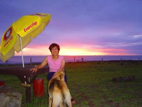 아내의 손을 잡고 노을을 향해 바닷가로 걸어가자 언제 왔는지 누렁이가 꼬리를 치며 따라왔다. 누렁이는 어느새 우리들의 친한 친구가 되어 있었다. 이스터 섬에 있는 동안 누렁이는 늘 우리를 보호라도 하려는 듯 따라다녔다. 오래전 컴컴한 새벽에 그리스 올림포스 산을 오를 때에는 흰 백구가 우리들의 길을 안내해 주었는데 이곳 이스터 섬에서는 누렁이가 반겨주었다.