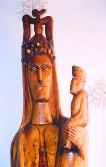 성모 마리아의 머리에는 새 조각이 얹혀 있는가 하면, 팔에 앉고 있는 아기 예수는 라파누이 어린이처럼 천진하게 보였다. 성모 마리아 상에 라파 누의 혼이 깃들어 있는 모습이다.