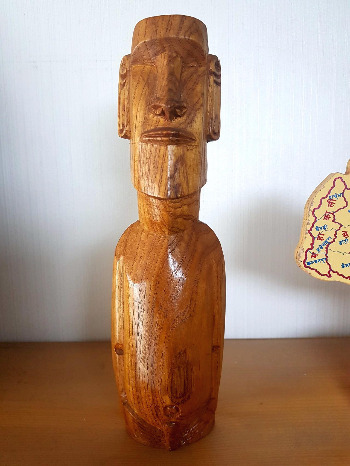 내가 이스터 섬에서 유일하게 산 것은 25cm 정도 되는 모아이 목각 하나다. 18,000페소를 주고 산 모아이는 긴 귀에, 굳게 다문 입술, 배꼽 밑으로는 다소곳이 두 손이 모아져 있다. 투박하고 못생겼지만 어쩐지 듬직한 믿음이 갔다. 그 목각 모아이가 어쩐지 정감이 들었다. 아내는 목각으로 새겨진 모아이 상을 포장지에 싸서 신주를 모시듯 조심스럽게 배낭에 집어넣었다. 그 모습을 바라보며 어쩐지 모아이가 난치병을 앓고 있는 아내를 지켜 줄 것만 같다는 생각이 들었다.