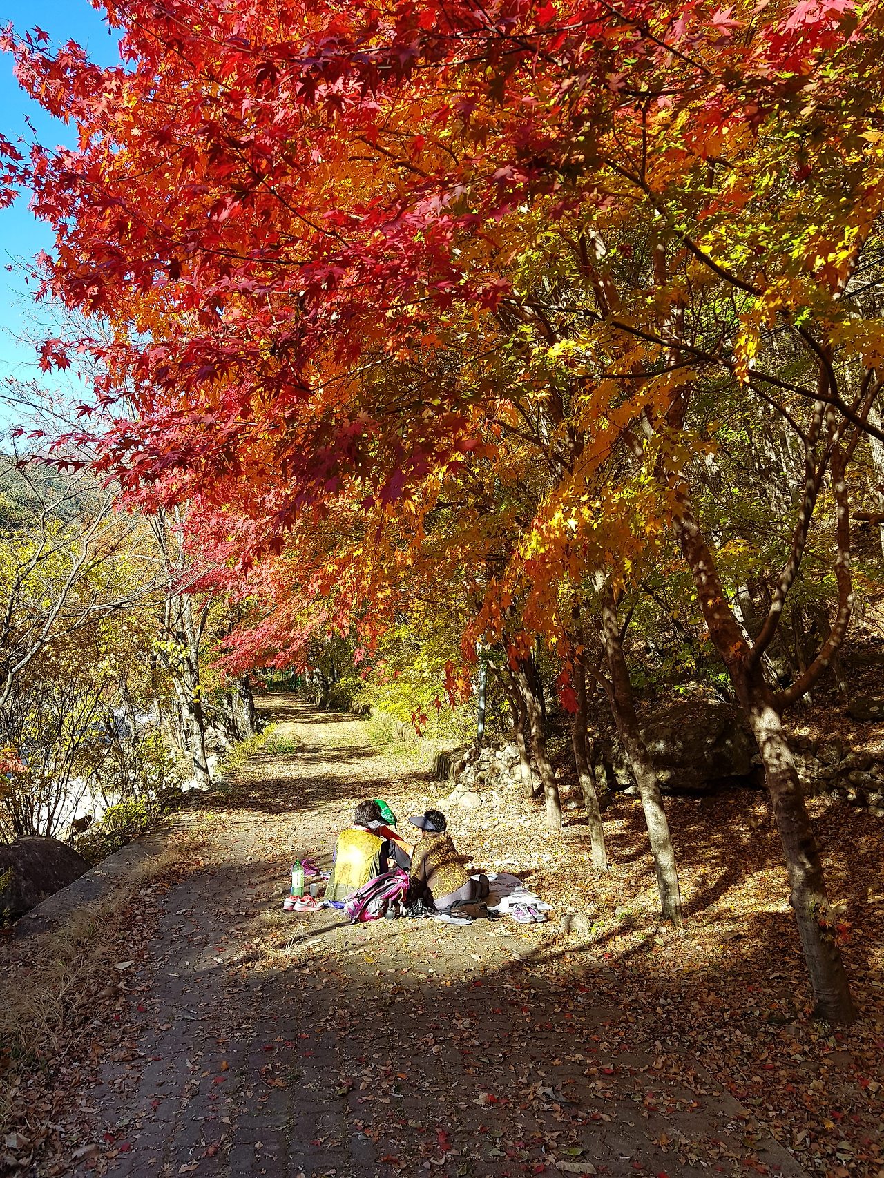 마장휴게소에 들어서니 역시 차량과 단풍 여행자들로 초만원을 이루고 있다. 화장실을 다녀온 후 우리는 집에서 준비해온 빵과 고구마로 자동차 안에서 아침을 먹었다. 아내가 보온병에 담아온 커피를 마시니 한결 피로가 풀린다.
