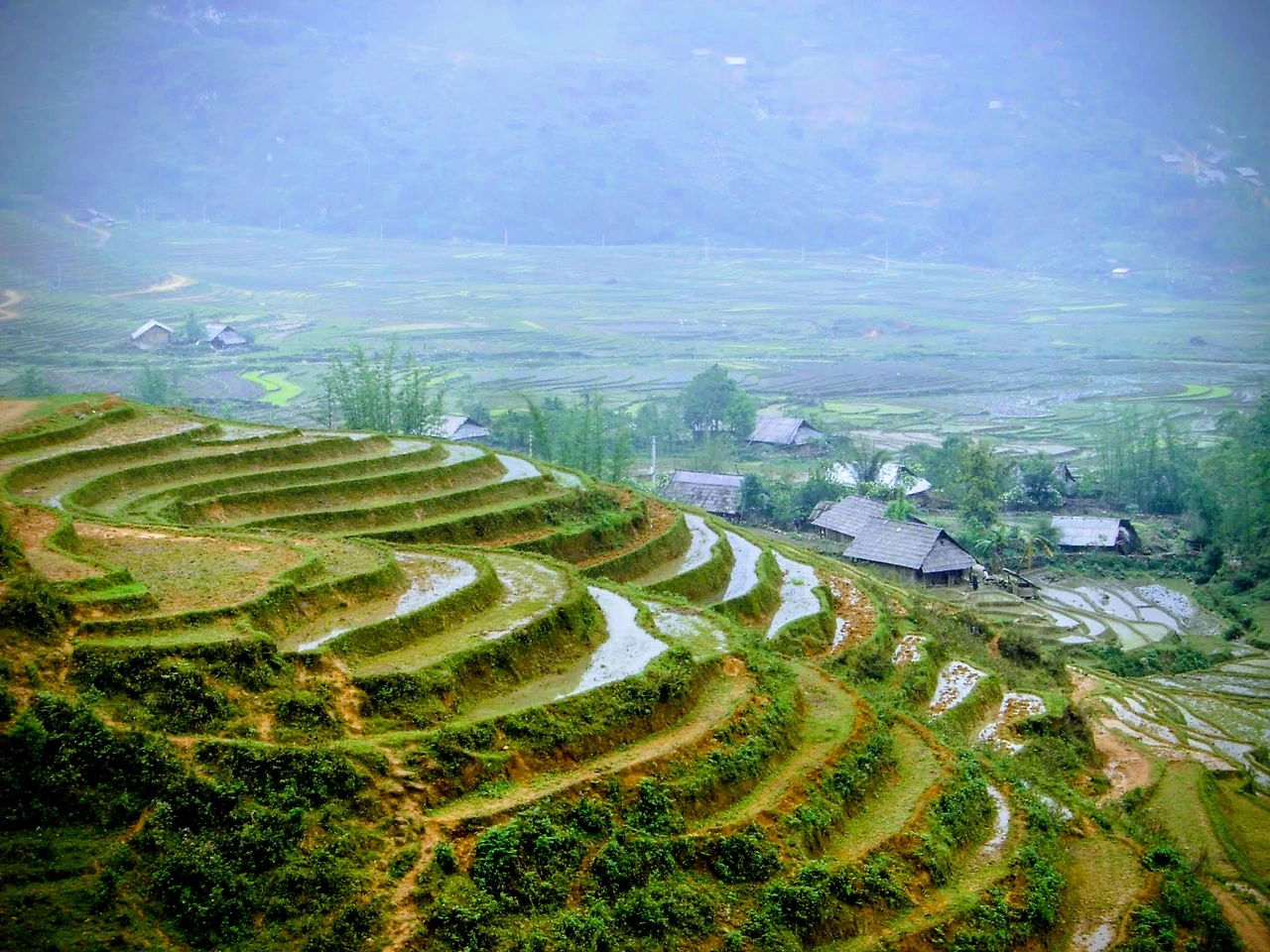 버스가 역을 벗어나자, 천상의 계단 같은 라이스 테라스가 눈앞에 펼쳐졌다. 물안개와 구름이 계곡을 감싸며 한 폭의 수채화 같은 풍경을 그려냈다. 대지는 이미 우리를 환영하고 있었다.