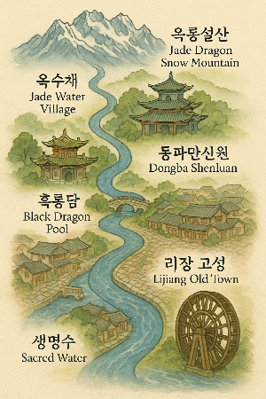 옥룡설산-운삼평-옥수채-흑룡담-물레방아-리장고성-생명수