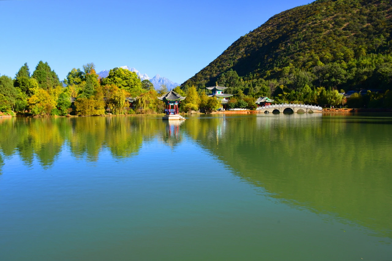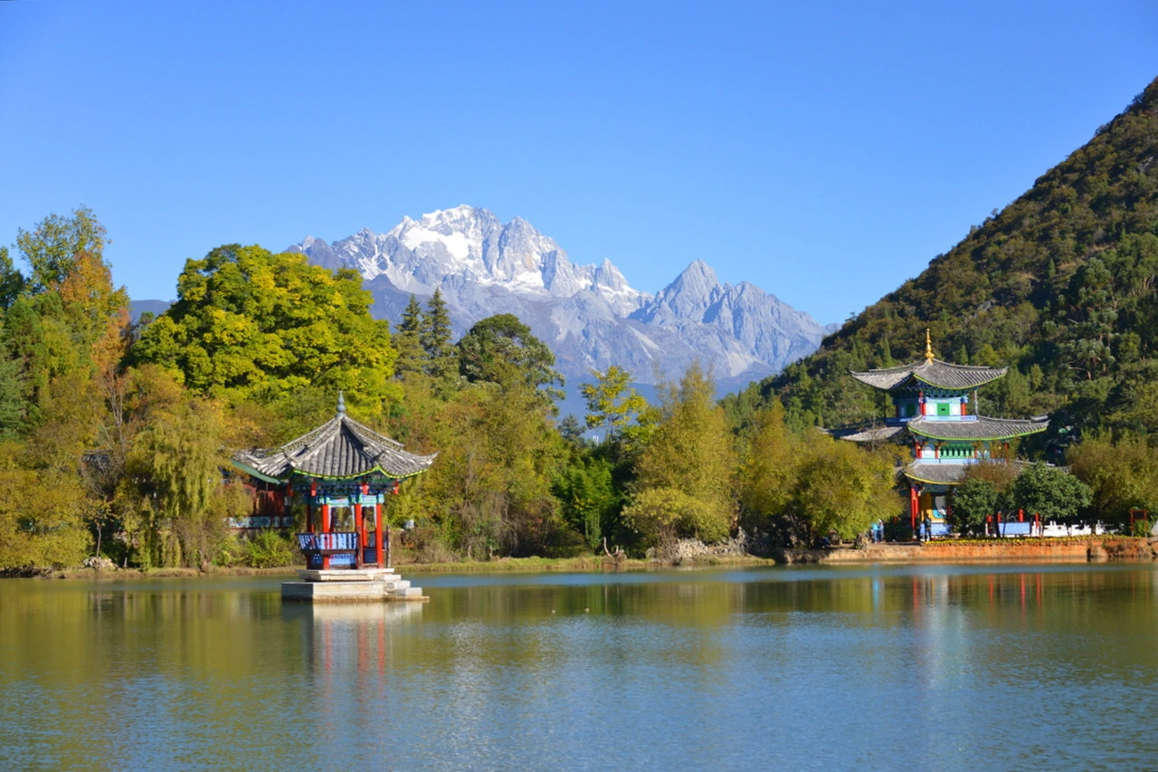 리장의 새벽은 옥빛 물소리로 깨어난다. 안개는 산을 감싸고, 하늘의 구름은 천천히 내려와 흑룡담 호수의 품에 안긴다. 흑룡담은 옥룡설산의 만년설이 녹아 흘러든 생명의 숨결이 머무는 성소이다. 이 호수는 이름과 달리 검지 않다. 햇살이 비추면 비췻빛으로, 달빛이 비치면 은빛으로 변한다.