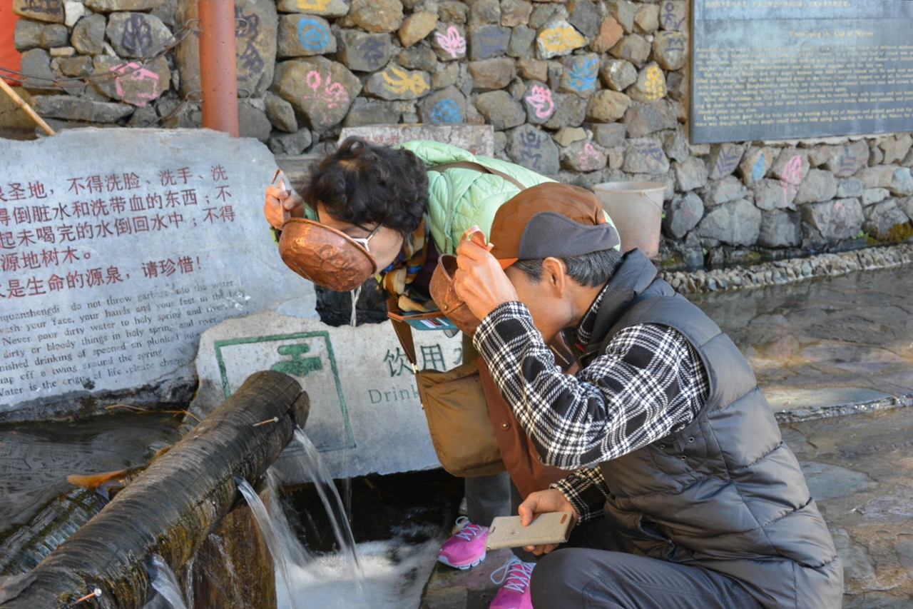 눈 녹은 물이 처음 머무는 곳, 옥수채(玉水寨)는 하늘의 정화가 끝나는 첫 제단이었다. 맑디맑은 물이 푸른 돌 위로 흐르며 하늘과 인간의 경계를 씻어낸다. 여기서 동파의 제사장들은 생명수를 그릇에 담아 신에게 바쳤다. 그 물 한 방울은 리장 사람들의 혼을 깨우는 성수다. 장족과 나시족, 바이족은 이곳을 자기들의 성소(聖所)라고 한다. 옥수채의 물을 바가지에 떠서 마시니 뱃속까지 시원하다.