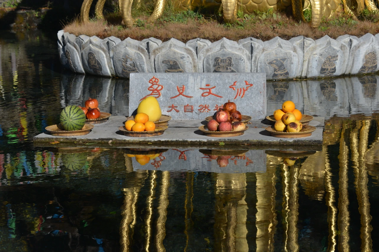 옥수채는 옥룡설산에서 리장으로 가는 계곡에 있다. 옥수채에 도착하여 대자연신법장으로 들어갔다. 이곳에는 리장의 수원 발원지인 여강원이 있다. 여강원 비석이 우뚝 서 있고 작은 연못 한가운데는 나시족이 숭배하는 대자연신이 황금빛을 발산하면서 찬란하게 서 있다. 대자연신은 관세음보살을 닮은 얼굴에 상체는 여자의 모습을 하고, 하체는 코브라들이 머리를 들어 공격자세로 자연신을 보호하고 있다. 그 주위에는 동물신상들이 이 뱀신을 둘러싸고 있다.