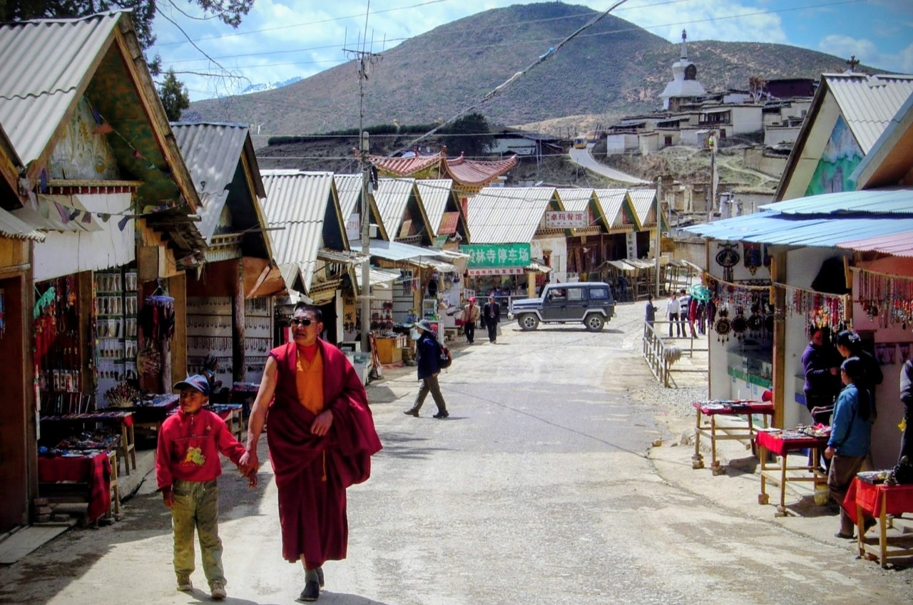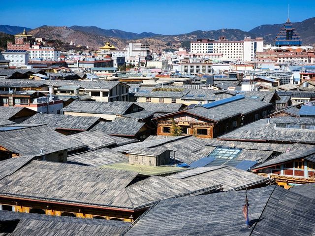 고성의 언덕에는 라마사원을 중심으로 고풍스러운 전통 민가가 사방으로 펼쳐져 있다. 외부는 티베트 전통 양식으로 되어 있지만, 내부는 현대문명의 이기로 가득 차 있다. 대부분이 민가는 식당, 상점, 카페, 술집, 여관 등 관광업소로 바뀌어가고 있다.