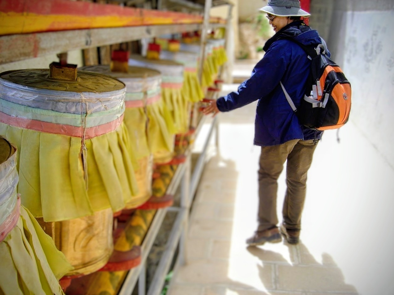 우리는 골목 끝의 귀산공원으로 가서 대형 마니차를 돌렸다. 그러나 6만 kg이나 되는 거대한 마니치는 꿈쩍도 하지 않았다. 성인 10여 명이 돌려야만 움직일 수 있는 세상에서 가장 큰 마니차였다.