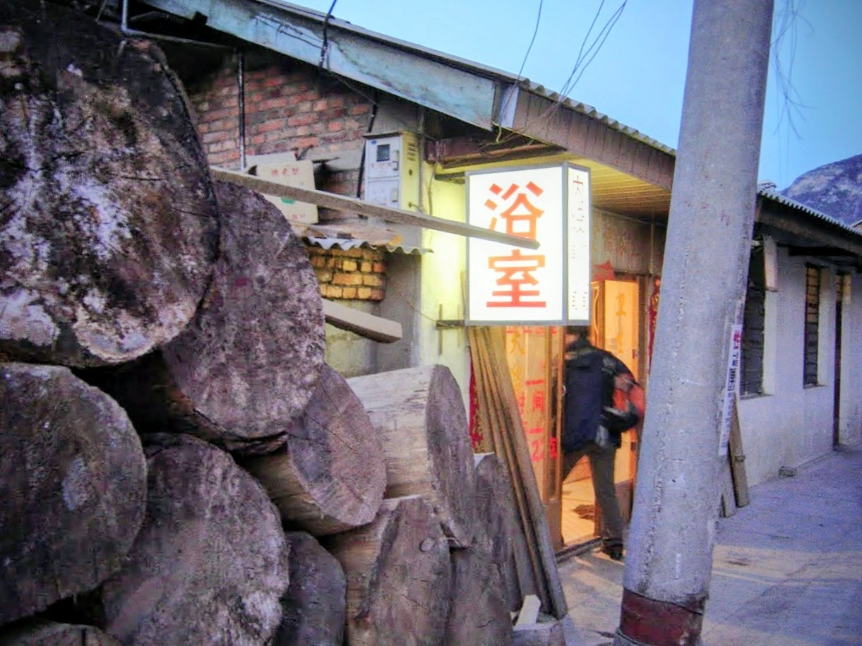 송찬림사 순례를 마치고 호스텔로 돌아온 우리는 호스텔 앞에 있는 작은 목욕탕에서 목욕을 했다. 목욕비는 5元을 받았다. 몽골식 재래 목욕탕은 장작을 지펴서 물을 데우고 있었다. 화덕에 장작을 지피면 불기운이 천장에 매달아 놓은 통으로 올라가 물이 더워졌다.