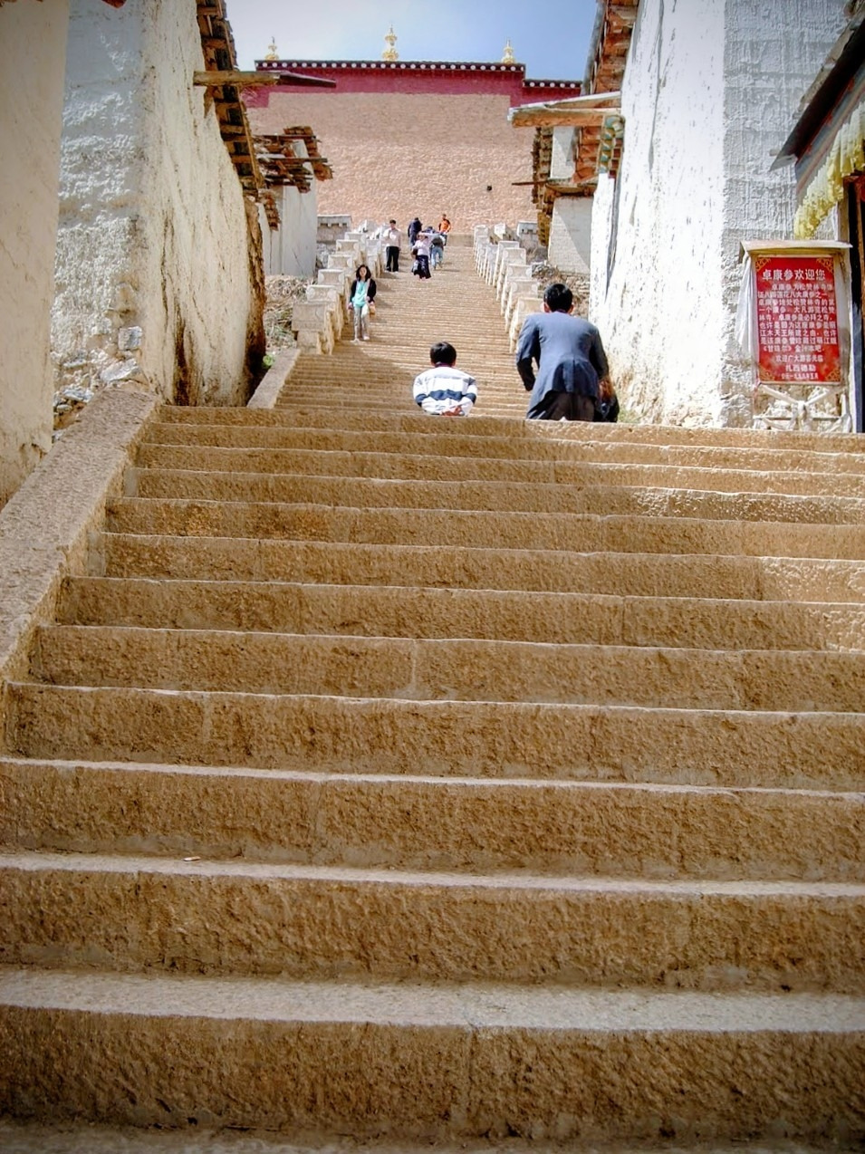 우리는 한 걸음 한 걸음, 마음으로 기도하듯 걸었다. 느림의 미학, 걷기 명상이란 이런 것이 아닐까? 티베트인들이 향을 사르고 오체투지로 절을 했다. 담벼락에는 흰 천으로 된 카타와 마니차가 걸려 있었다. 사람들은 카타를 목에 걸거나 벽에 걸고 ‘옴마니 반메훔’을 염송 하며 마니차를 돌렸다.