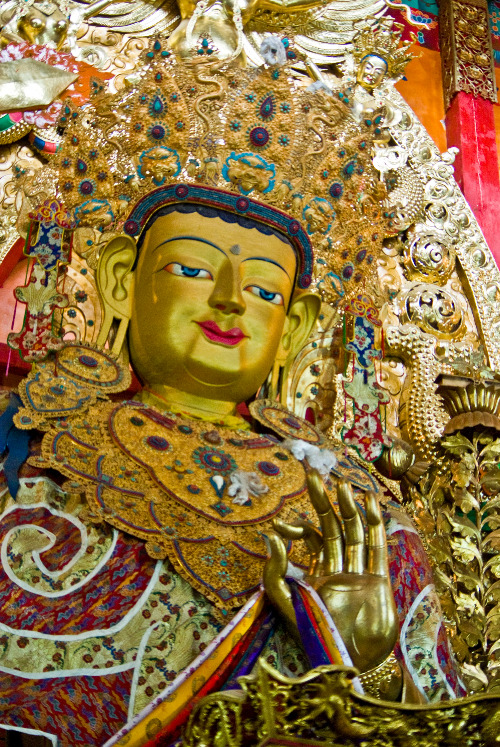 법당 안에는 거대한 불상이 앉아 있었다. 황금빛으로 빛나는 그 얼굴은 자비로 가득했고, 눈은 세상의 슬픔을 꿰뚫는 듯 깊었다. 벽면에는 윤회의 여섯 길을 묘사한 벽화가 이어지고, 천정에는 천상의 문양이 가득했다. 수백 개의 버터램프가 켜져 있었다. 램프의 불꽃이 서로 반사되어 사원 전체가 따스한 별빛으로 물들었다. 그 빛 속에서 라마승들이 염불을 이어갔다. 낮게 울리는 그 음성은 산의 심장처럼 공간 전체를 울렸다.