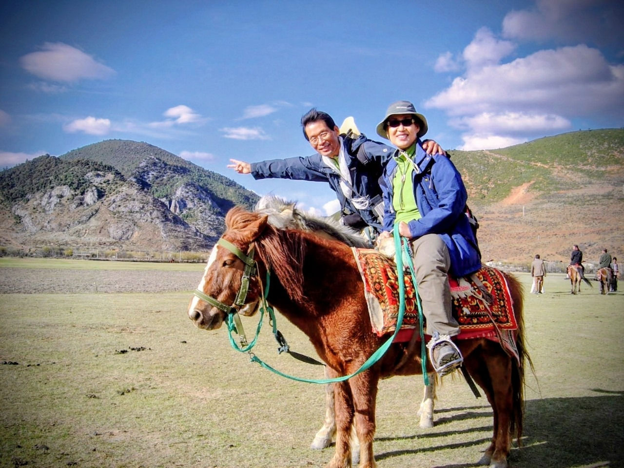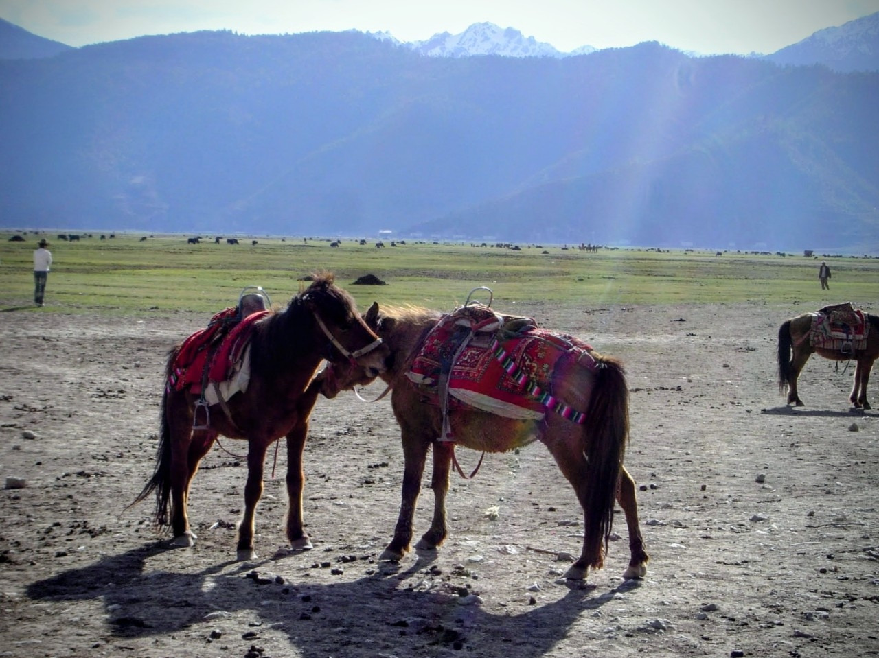 가끔 구름 사이로 눈부신 태양이 얼굴을 내밀며 햇빛을 보내주었다. 햇빛사이로 만년설에 뒤덮인 설산들이 희뜩 희뜩 모습을 드러냈다. 조랑말을 타고 초원을 지쳐 가다 보니 갑자기 여기가 이상향의 세계인 샹그리라가 아닌가 하는 착각에 빠졌다.
