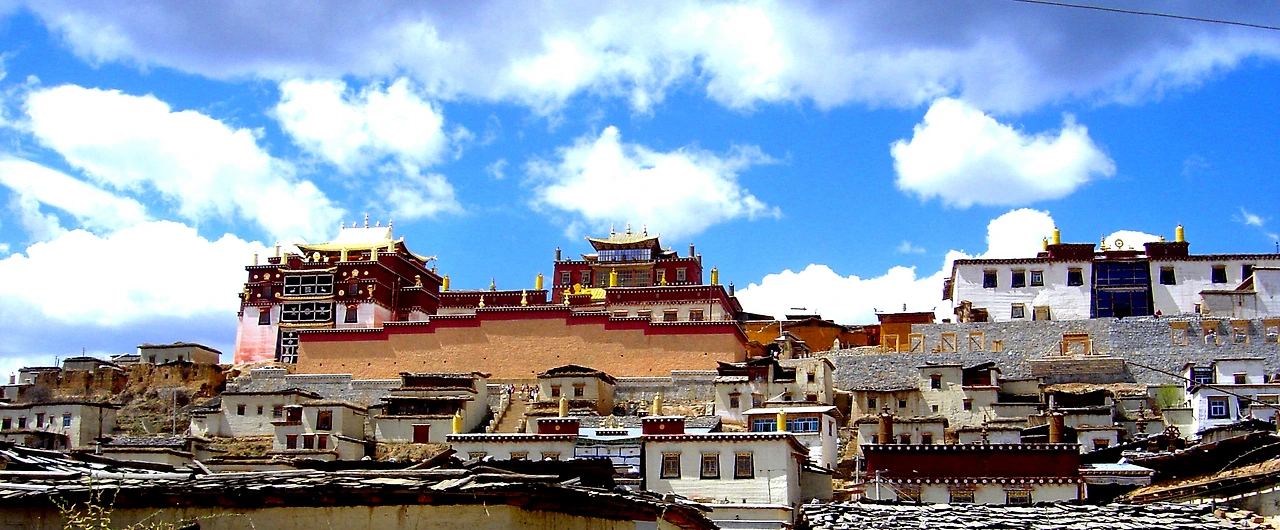 송찬림사는 1679년, 5대 달라이 라마의 지시로 세워진 겔룩파(黃教)의 중심 사원이다. 샹그리라 도심에서 5km 떨어진 포핑산(佛屛山) 기슭에 위치한 송찬림사는 윈난성 최대의 티베트 겔룩파 사원이다. ‘쑴첼링’은 ‘3명의 신선이 살던 땅’이라는 뜻으로 라싸의 포탈라궁을 본떠서 건축했다.