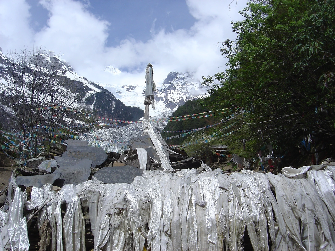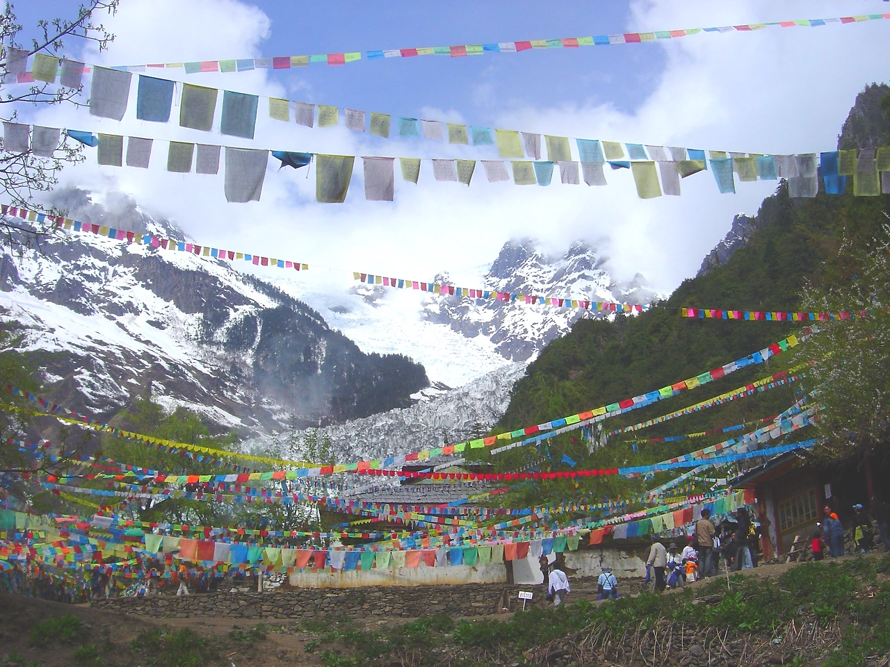 창문 너머로 매리설산은 하얀 옷을 입은 천사처럼 서 있었다. 우리는 서둘러 빙하순례에 나섰다. 길 초입에는 푸른 붓꽃이 피어 있었고, 조랑말을 몰던 마부들의 외침이 울려 퍼졌다.