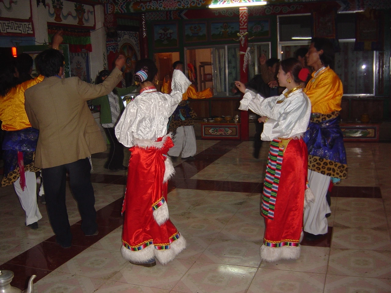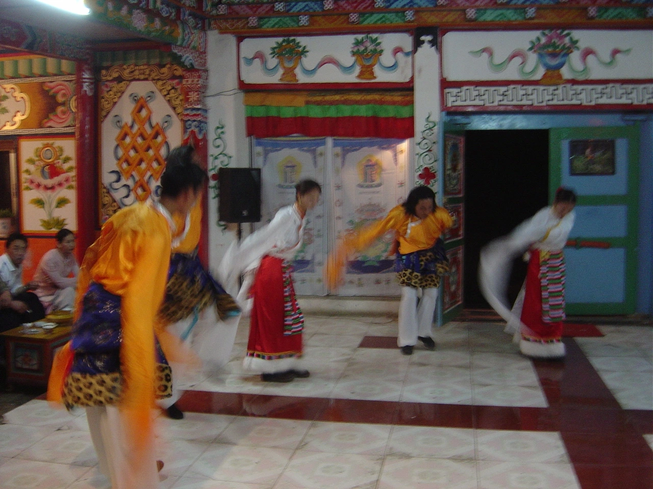 산책을 하고 가무극장으로 내려오니 불빛이 아름답게 번졌다. 어디서 모여들었는지 남녀노소가 티베트 전통복을 입고 원을 그리며 춤을 췄다. 붉은 볼을 한 가수가 노래를 불렀다. 그녀의 노래는 매리설산의 정상까지 치솟는 듯한 고음으로 맑고도 비통했다.