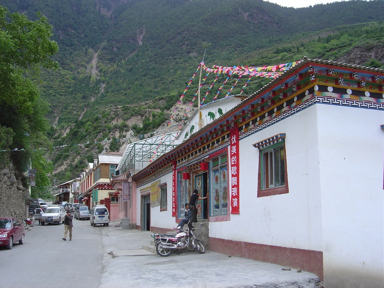 우리는 오늘 밤 묵을 숙소를 정하기 위해 마을을 돌아보았다. 게스트 하우스는 대부분 화장실과 방이 따로 있어 화장실을 자주 가는 아내에게는 위험했다. 계곡 초입에 가무극장에 달린 2층 숙소의 화장실은 2층에서 계단을 타고 내려가게 되어 있어 사다리를 타고 내려가거나 밖에 있는 것보다는 안전했다. 80위안을 달라고 하는 것을 60위안으로 흥정하여 숙소를 정했다.