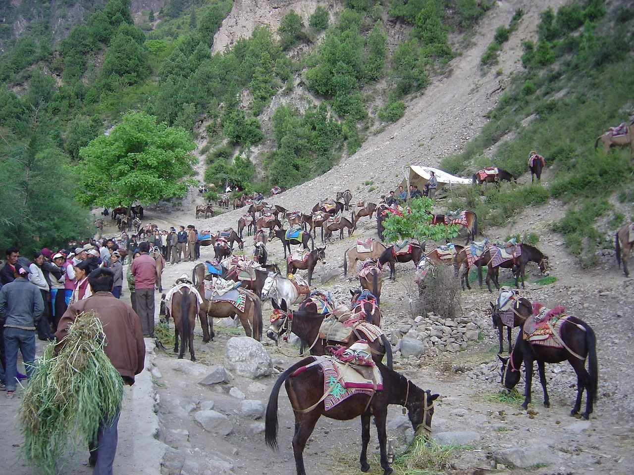 설산 입구에는 말과 마부들이 장사진을 이루고 있었다. 허연 입김이 산공기 속으로 피어오르고, 말똥 냄새가 코를 찔렀다. 바로 이들이 옛 마방(馬幇)의 후예들일까. 차마고도의 영광은 사라졌지만, 그들의 후손은 여전히 이 길 위에서 삶을 이어가고 있었다.
