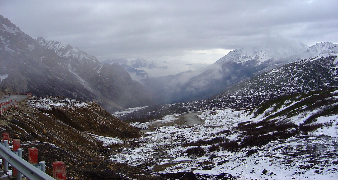 5월의 눈. 그것은 이 탑처럼 솟은 고원지대에서는 아주 자연스러운 사건이었다. 중국에서 가장 높은 명승지 중의 하나인 황룡은 해발 5160m의 옥취봉과 설보정(5580m) 줄기 아래 놓인, 티베트조차도 ‘숨이 얇아지는 땅’이라 부르는 곳. 차창 밖에는 사람이 사는 흔적 대신 “사고 다발, 안전 확보”라는 경고문만이 거센 바람 속에서 흔들리고 있었다.