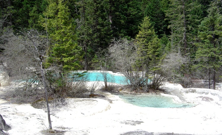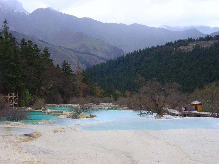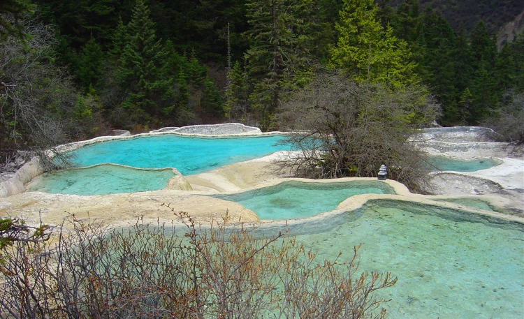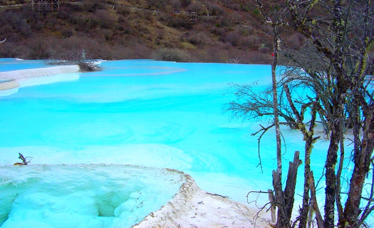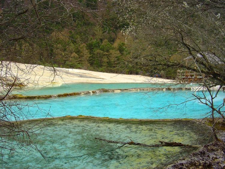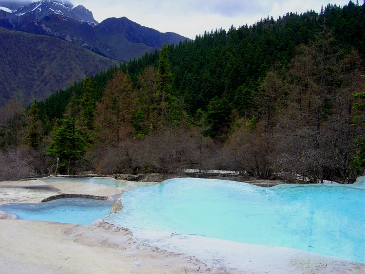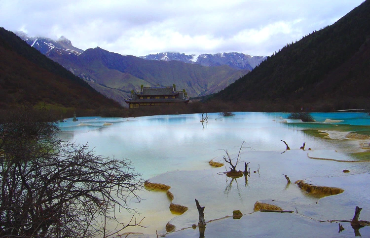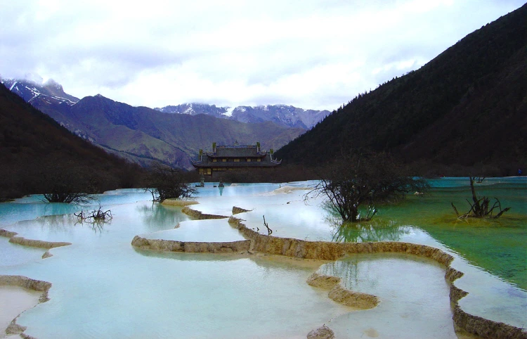 나는 고개를 끄덕였다. 황룡의 계곡에 천상의 계단처럼 펼쳐진 연못, 옥빛과 황금빛이 겹겹이 번지는 그 풍경은 더 이상 땅의 것이 아니었다. 마치 신화 속에서 서왕모가 살던 하늘의 호수—요지(瑤池)가 그대로 이곳에 내려앉은 듯하였다.
