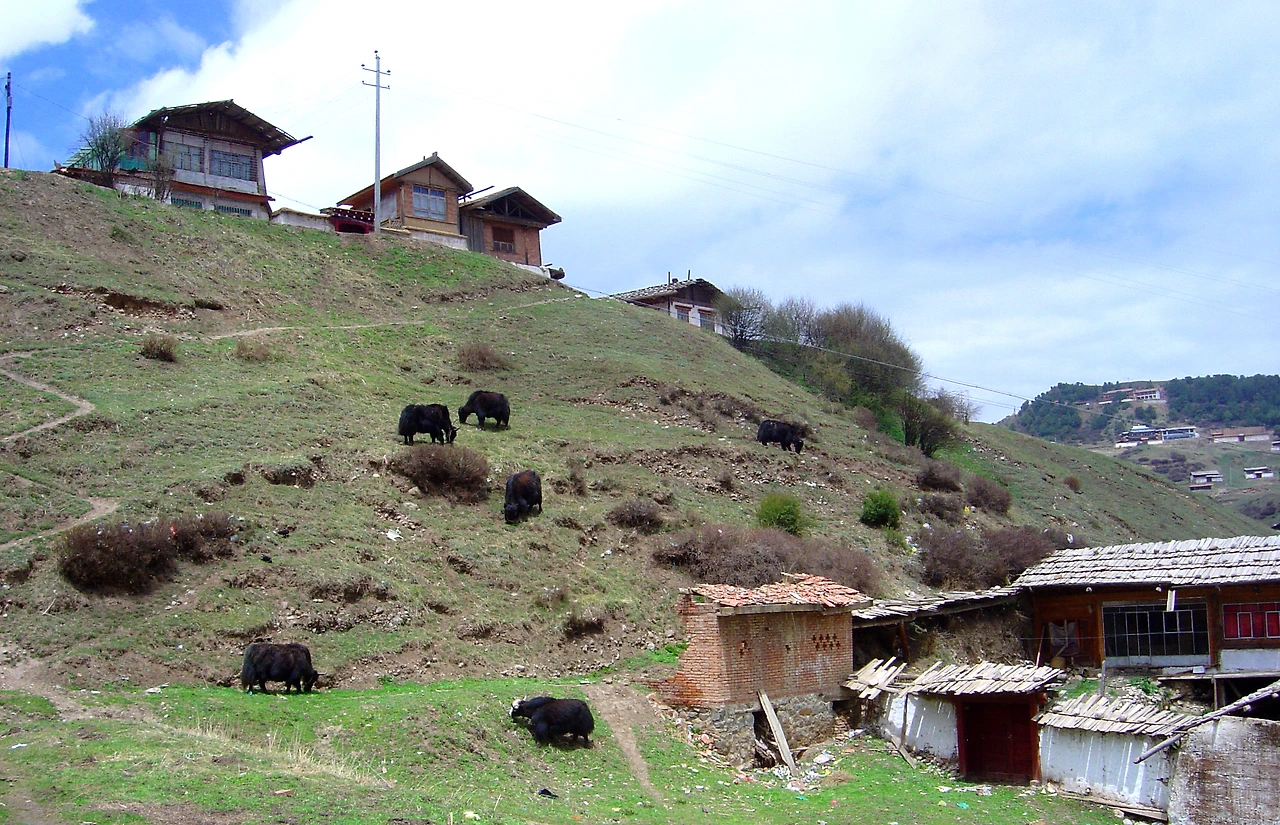 우리는 개울을 지나 야크들이 한가로이 풀을 뜯는 언덕으로 향했다. 고원의 거친 짐승들은 바람처럼 태연했고, 그 눈빛에는 오래된 고원의 침묵이 어려 있었다. 야크 한 마리가 잠시 우리를 바라보았다.