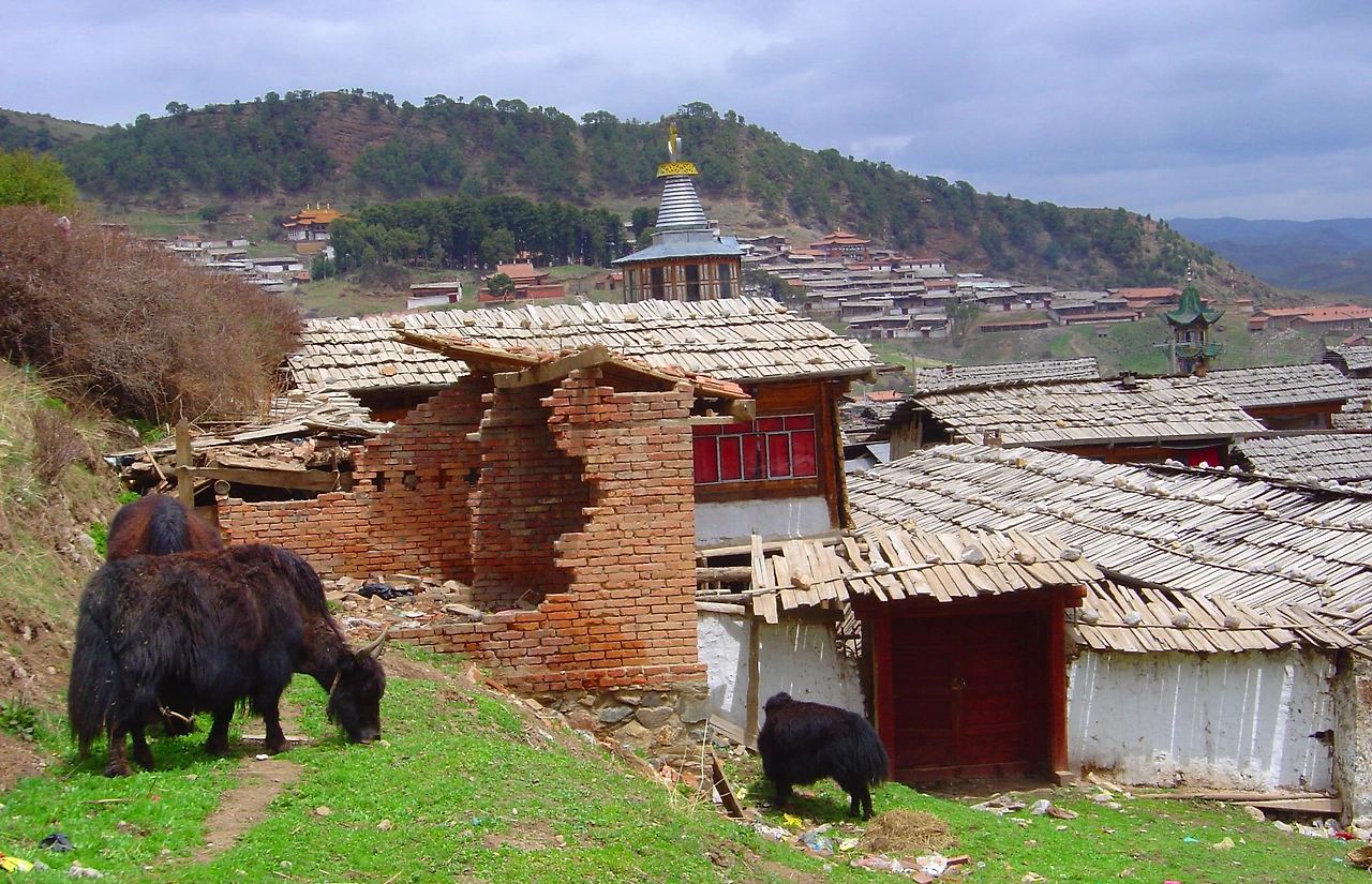 마을까지는 걸어서 한참을 가야 하는 길, 그때 마침 낡은 빵차가 삐걱대는 소리를 내며 나타났다. 문은 오래된 경전처럼 바람에 흔들릴 때마다 얇게 울렸다. 1인당 5위안을 내고 차에 올라타자, 빵차는 마치 순례자들에게 작은 연민을 싣는 듯 천천히, 그러나 단단한 호흡으로 해발 3,350m의 랑무스 마을로 우리를 데려다주었다.