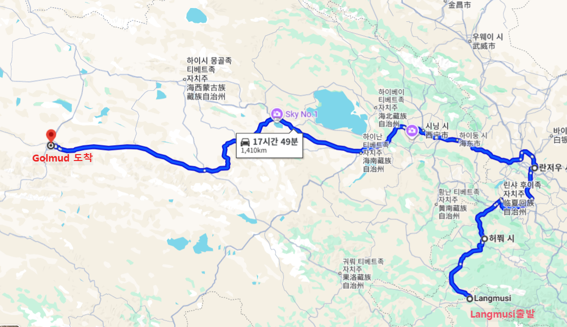 랑무스를 버스를 타고 험한 티베트 고원을 달려, 란조우에서 기차를 타고 이틀 만에 골무드에 도착했다.