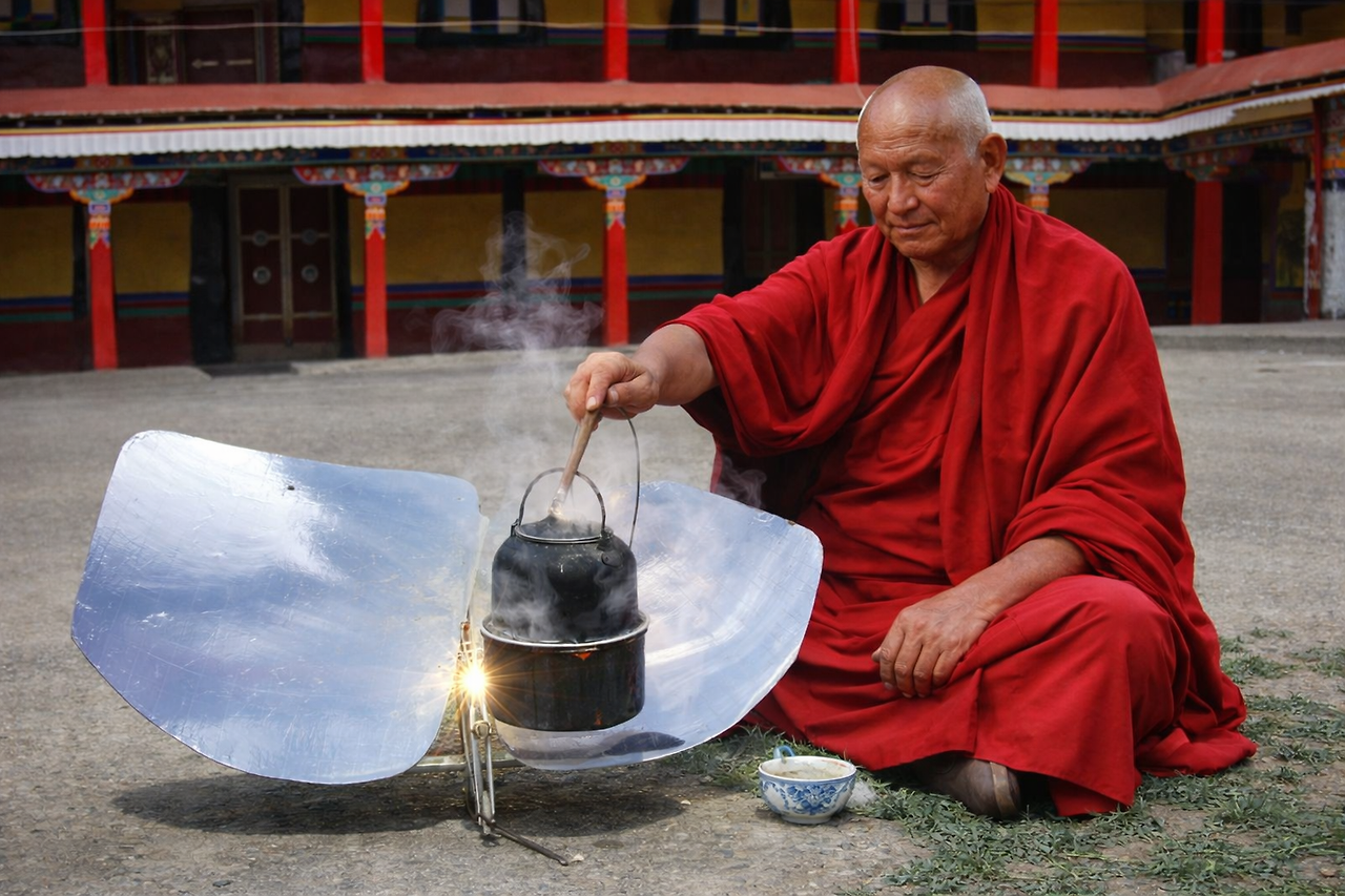 사원 꼭대기에서는 태양열 주전자가 물을 끓이고 있었다. 어린 스님은 끓은 물을 내리고, 새 주전자를 올려놓는다. 스위치 하나로 물이 쏟아지는 문명사회와 달리, 이곳에서는 햇볕과 물의 고마움이 동시에 느껴진다. 무공해의 불, 무공해의 물. 수행은 이렇게 삶의 방식으로 이어진다. 수행승들의 표정은 맑은 물 같았고, 하늘 같았다. 멀리 눈 덮인 봉우리가 그 뒤를 받치고 있었다.