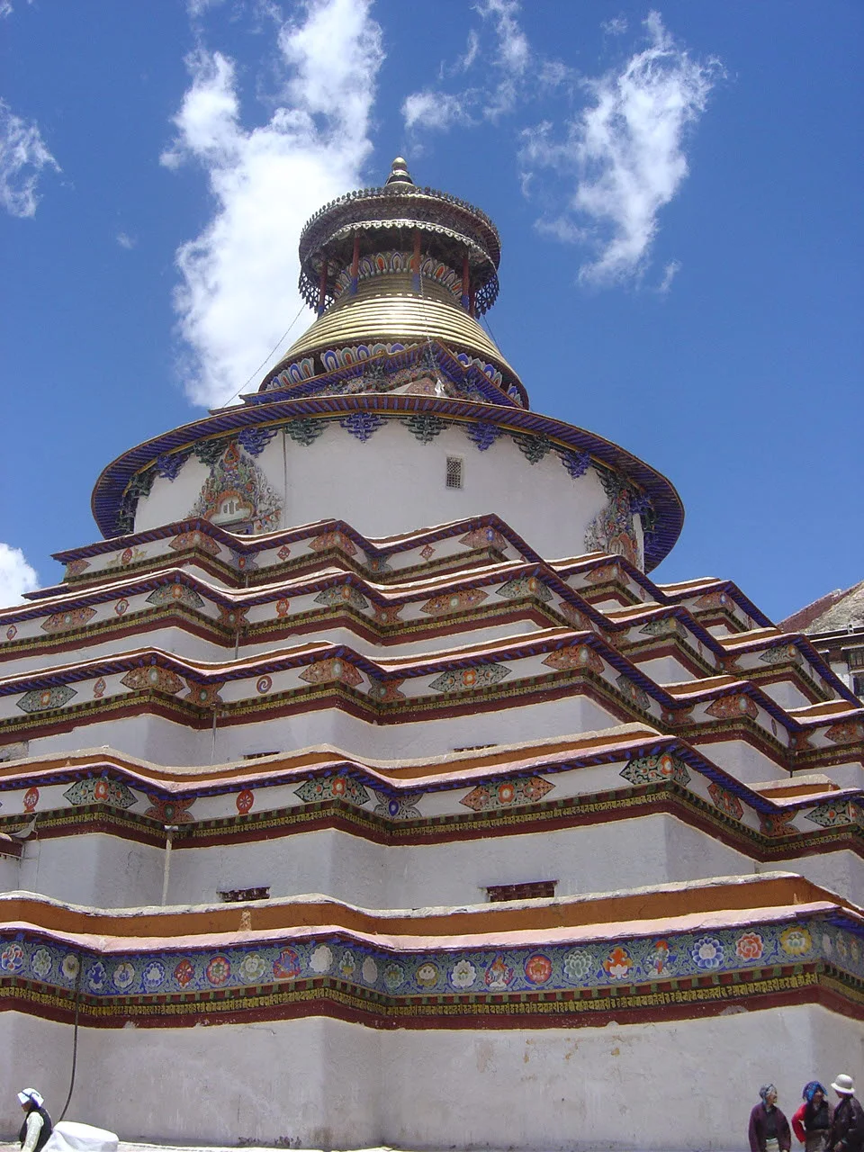 광장의 축제는 끝날 기미가 안 보인다. 우리는 오늘 시가체로 떠나야 하므로 시간이 별로 많지 않았다. 광장 뒤편으로 가니 흰 벽과 붉은 띠가 겹겹이 숨 쉬는 사원 단지가 나타났다. 펠코르 최데(Pelkhor Chöde)이다. 한마디로 말해 “서로 다른 길들이 한 지붕 아래서 공존하는 티베트 불교의 드문 장소”다. 사원 하나가 아니라, 사원·불탑·승원들이 어깨를 맞댄 하나의 수행 세계이다.